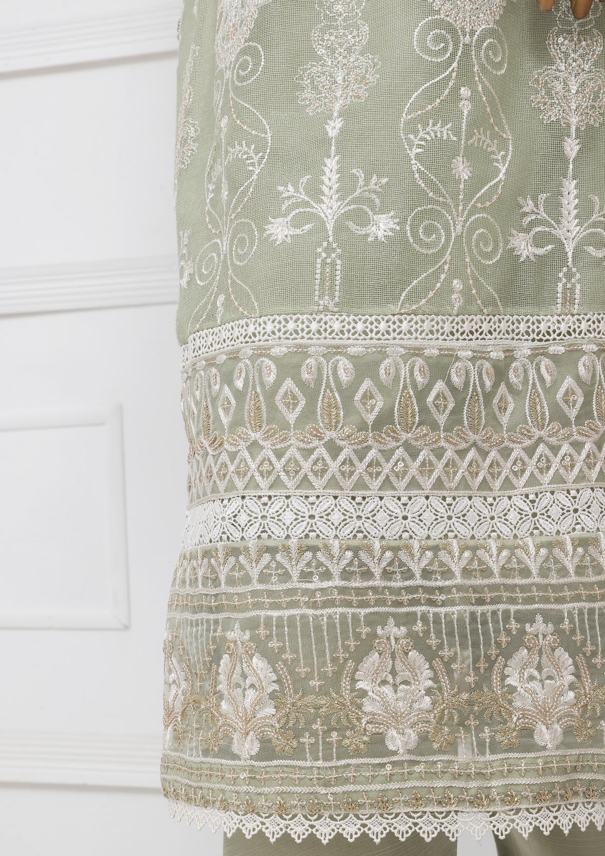 Shirt Khaddi, Embroidered, Neck Handwork, Lacework, Viscose Inner.