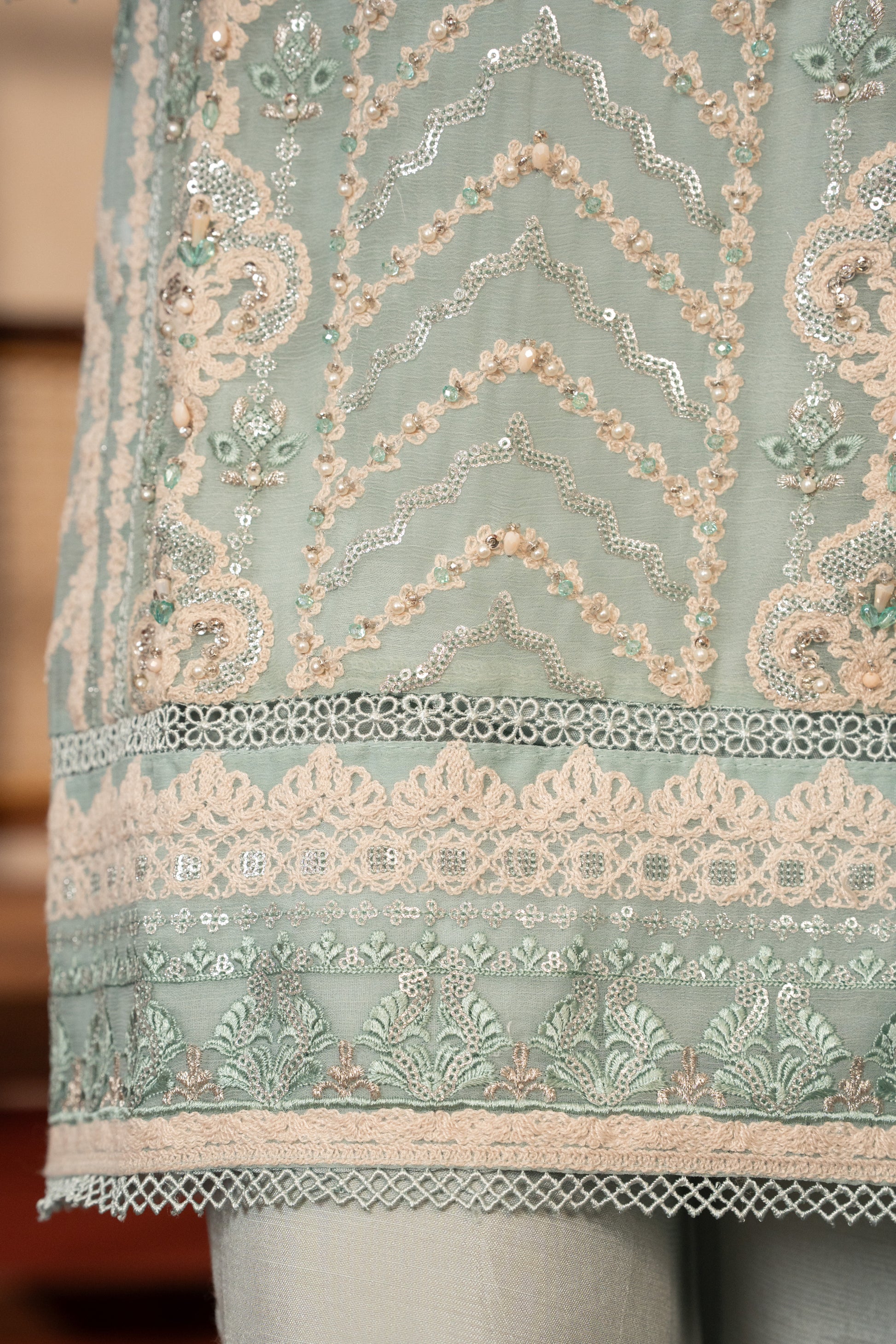Shirt Chiffon Embroidered shirt with handWork , Lacework , Viscose inner