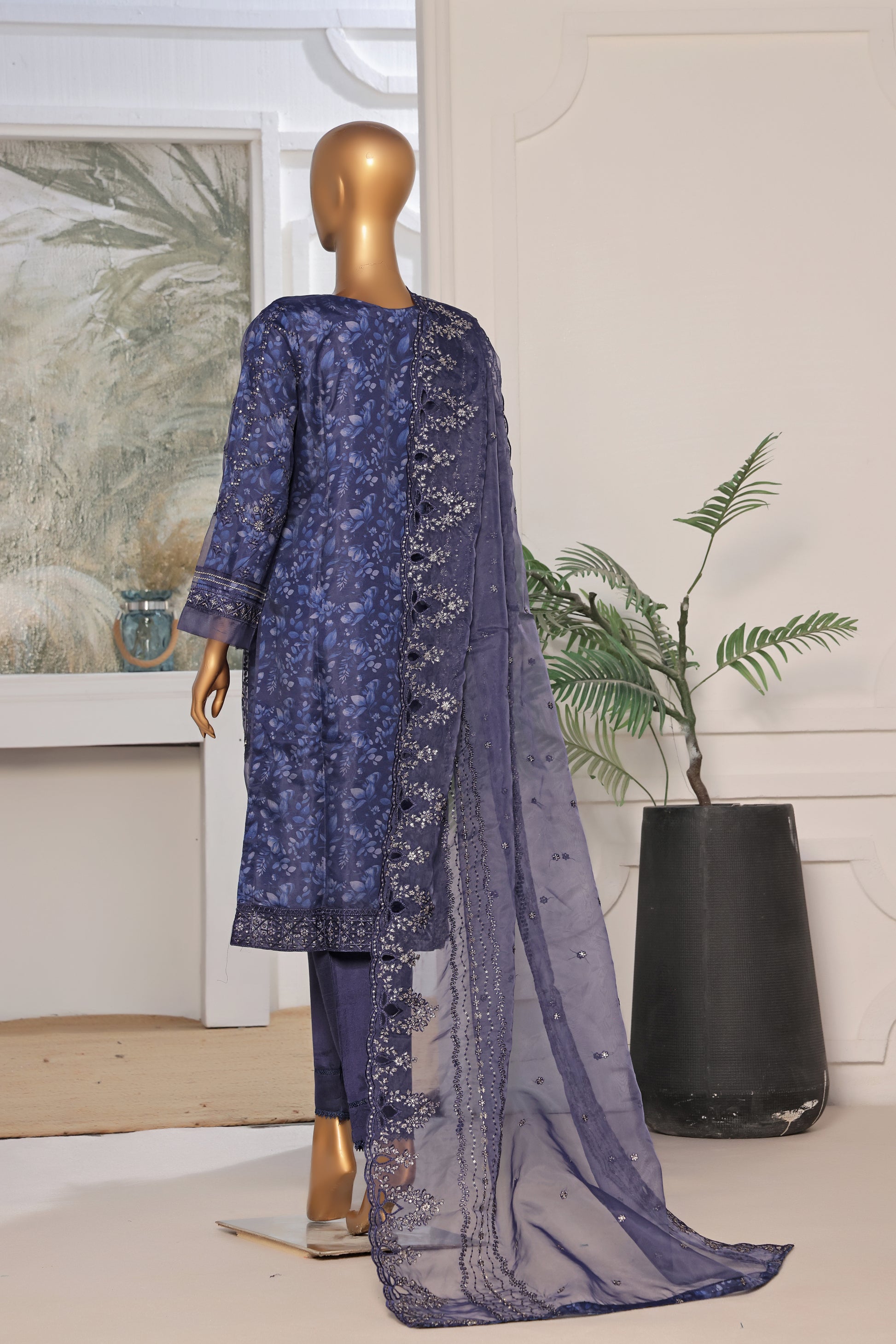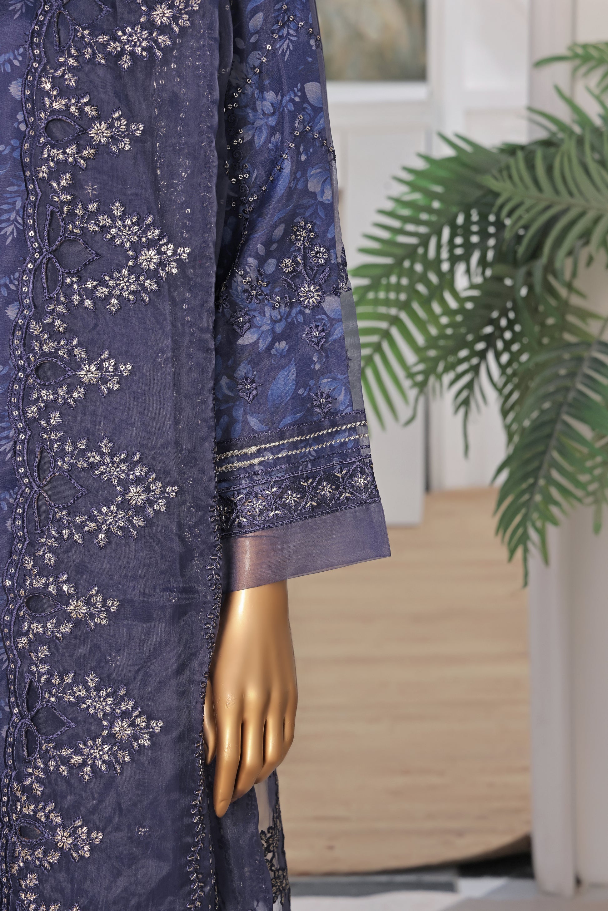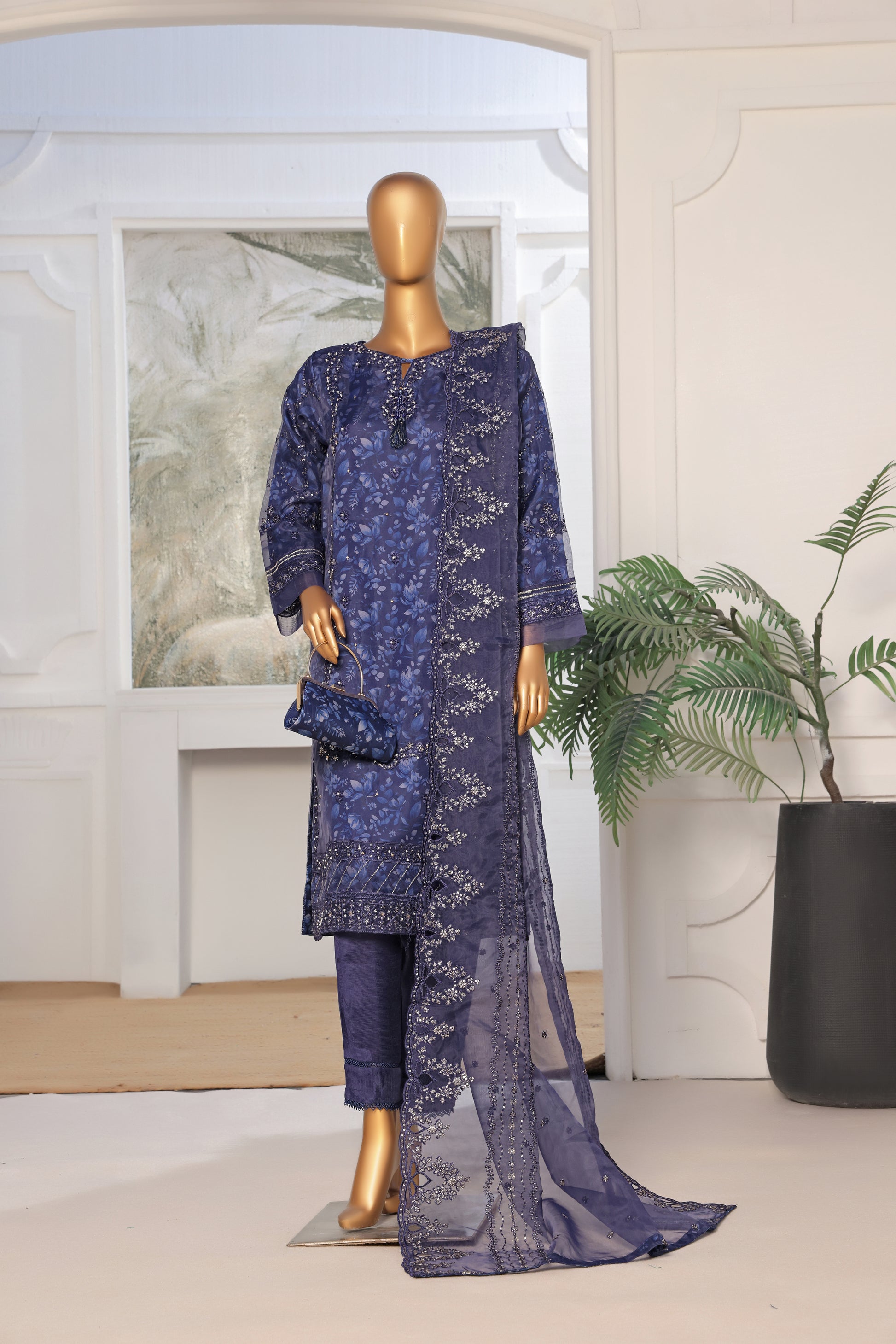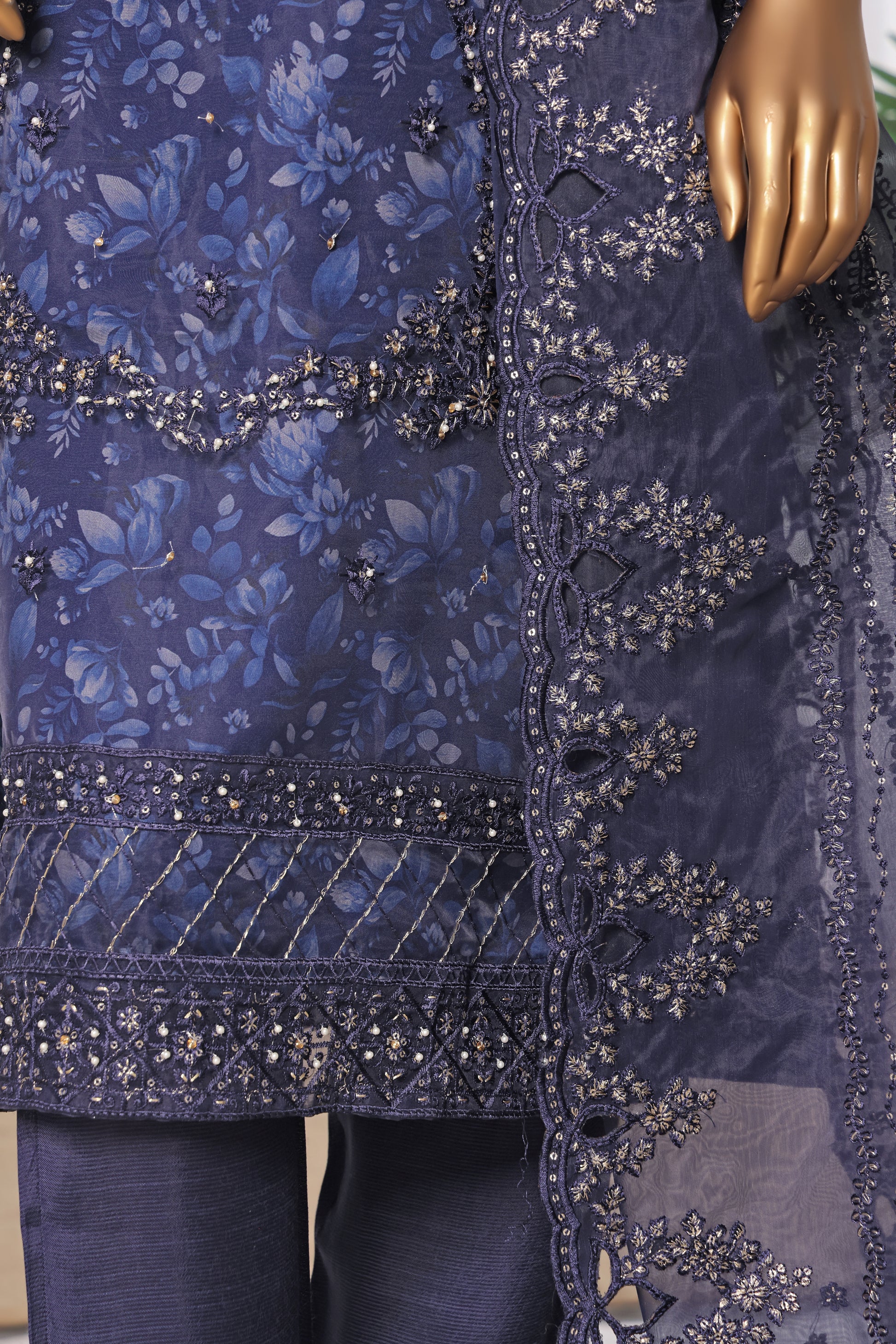 Shirt: Semi-Stitched Embroidered Organza Shirt adored with embellishments and paired with a digital Printed Silk Inner