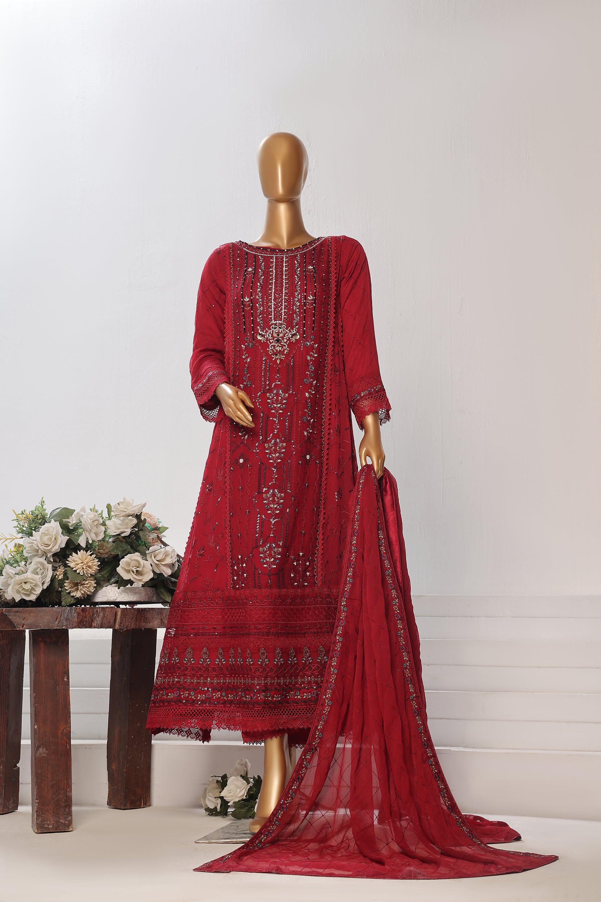 Cherry - Rangoon - Chiffon Ensemble by Maria Fabrics