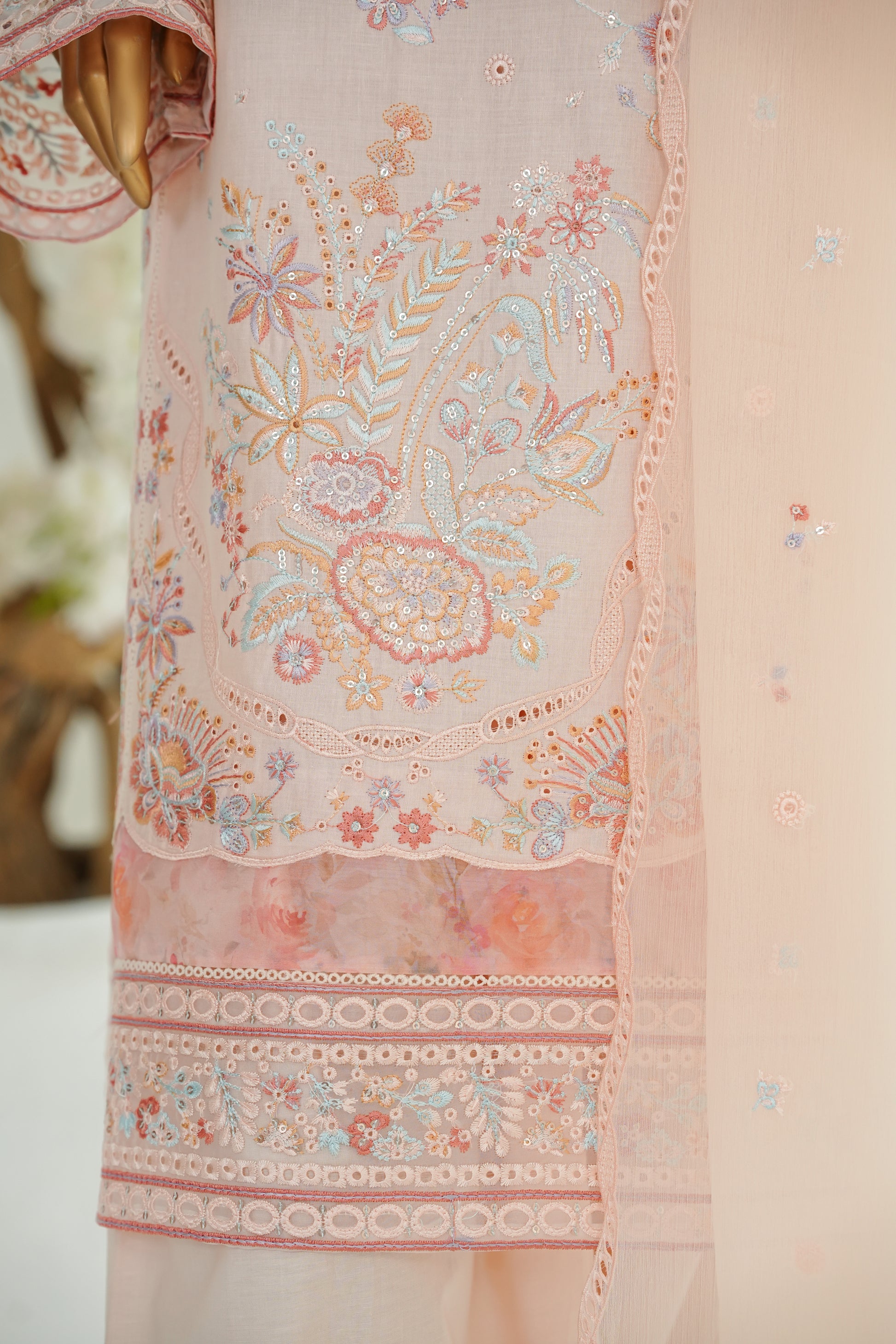 Elegance personified, our Lawn ensemble features: