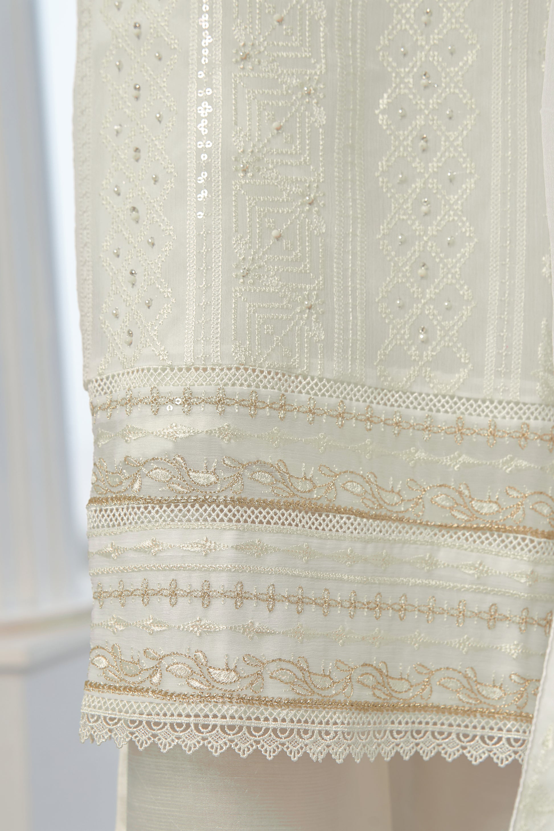 Dupatta: Embroidered Chiffon with 4-side Silk Dori Piping.