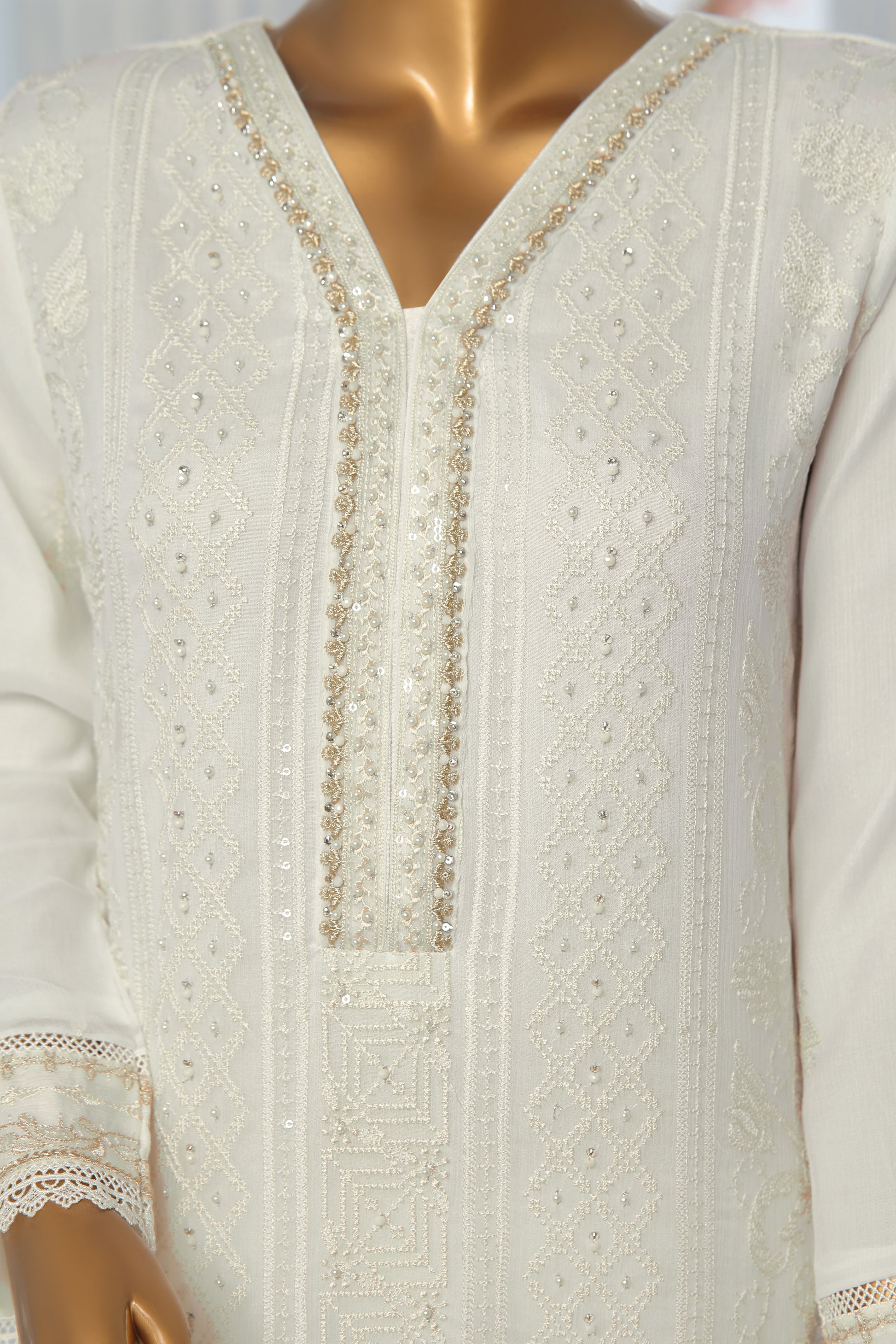 Shirt: Chiffon Embroidery Cross Stitched With Handwork, and Lacework. Viscose inner for comfort.