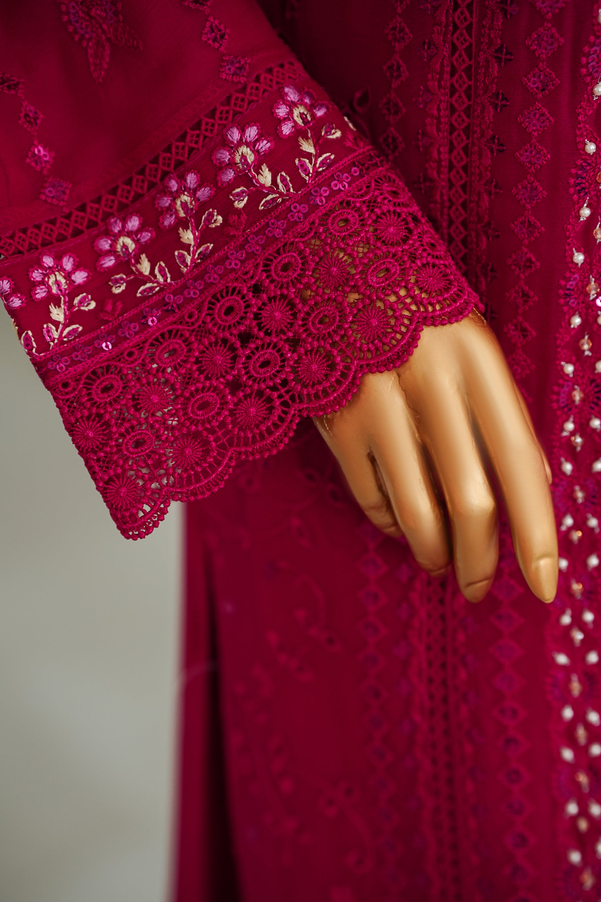 Shirt Chiffon Embroidered shirt with handWork , Lacework , Viscose inner