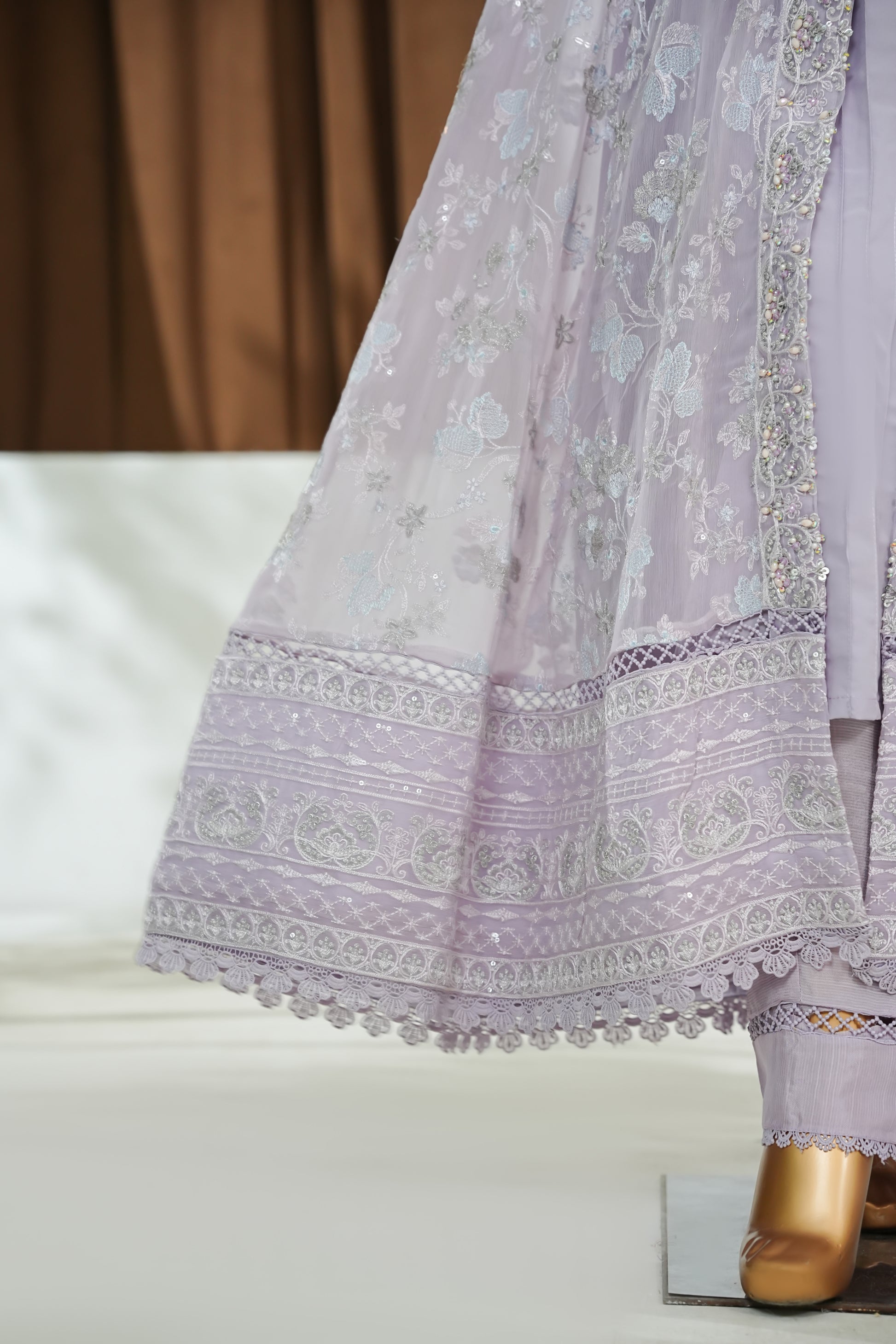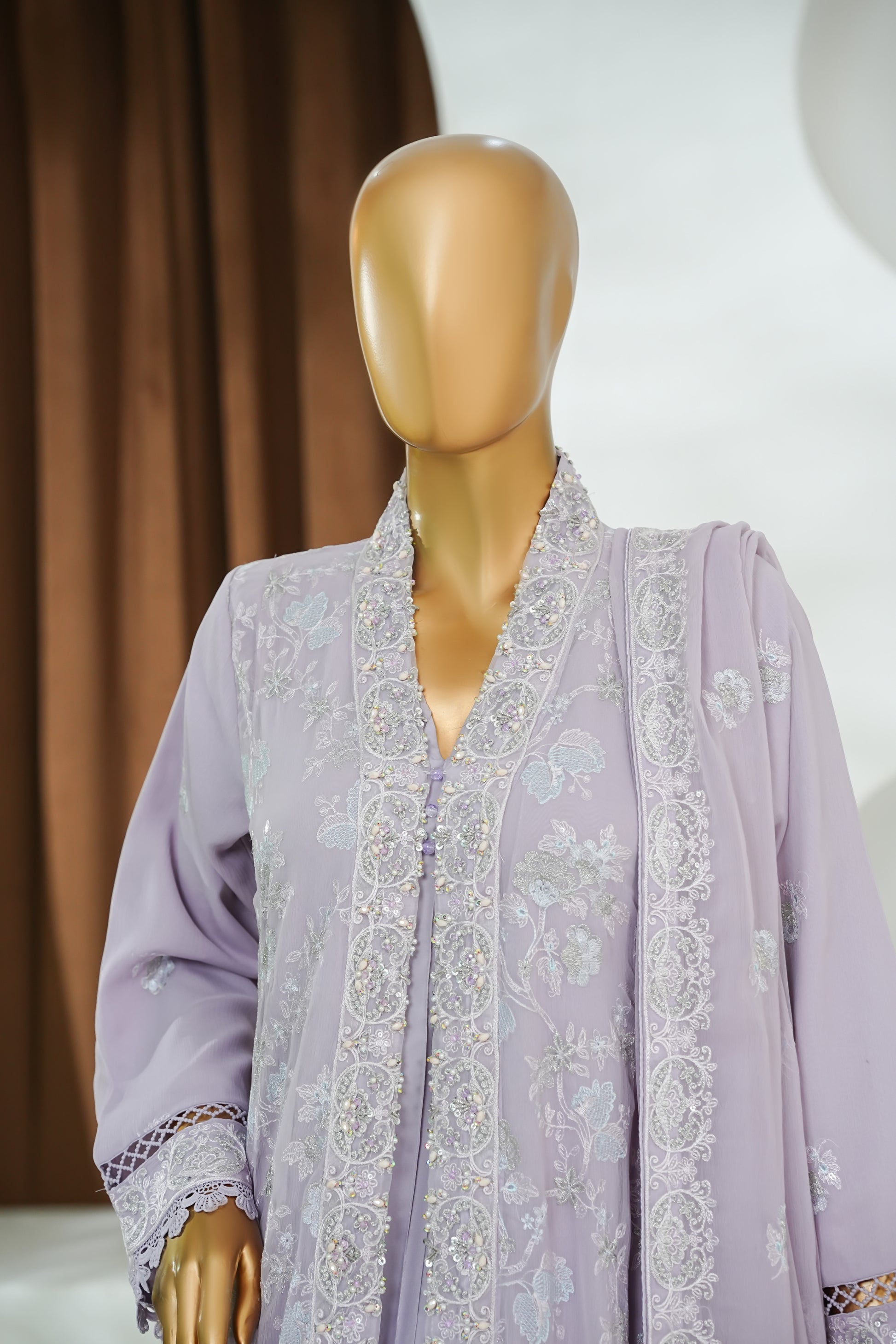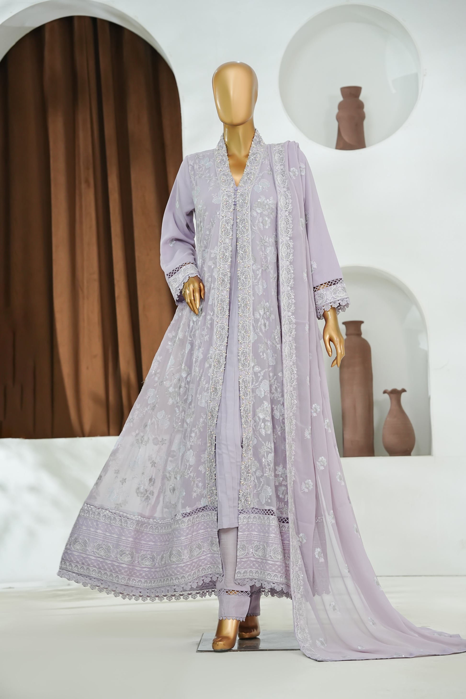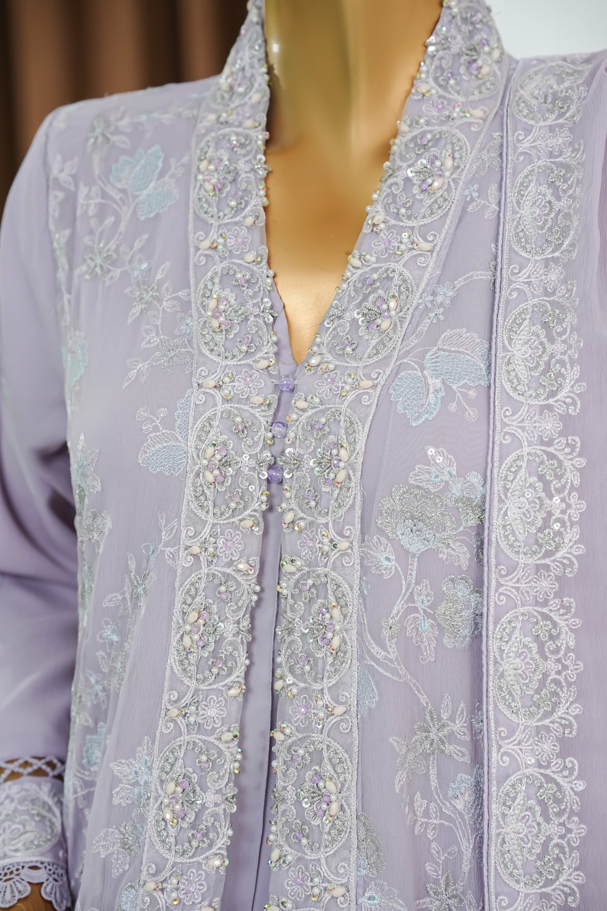 Maxi Chiffon Front Open Embroidered, handWork Patti , Lacework , Viscose inner .
