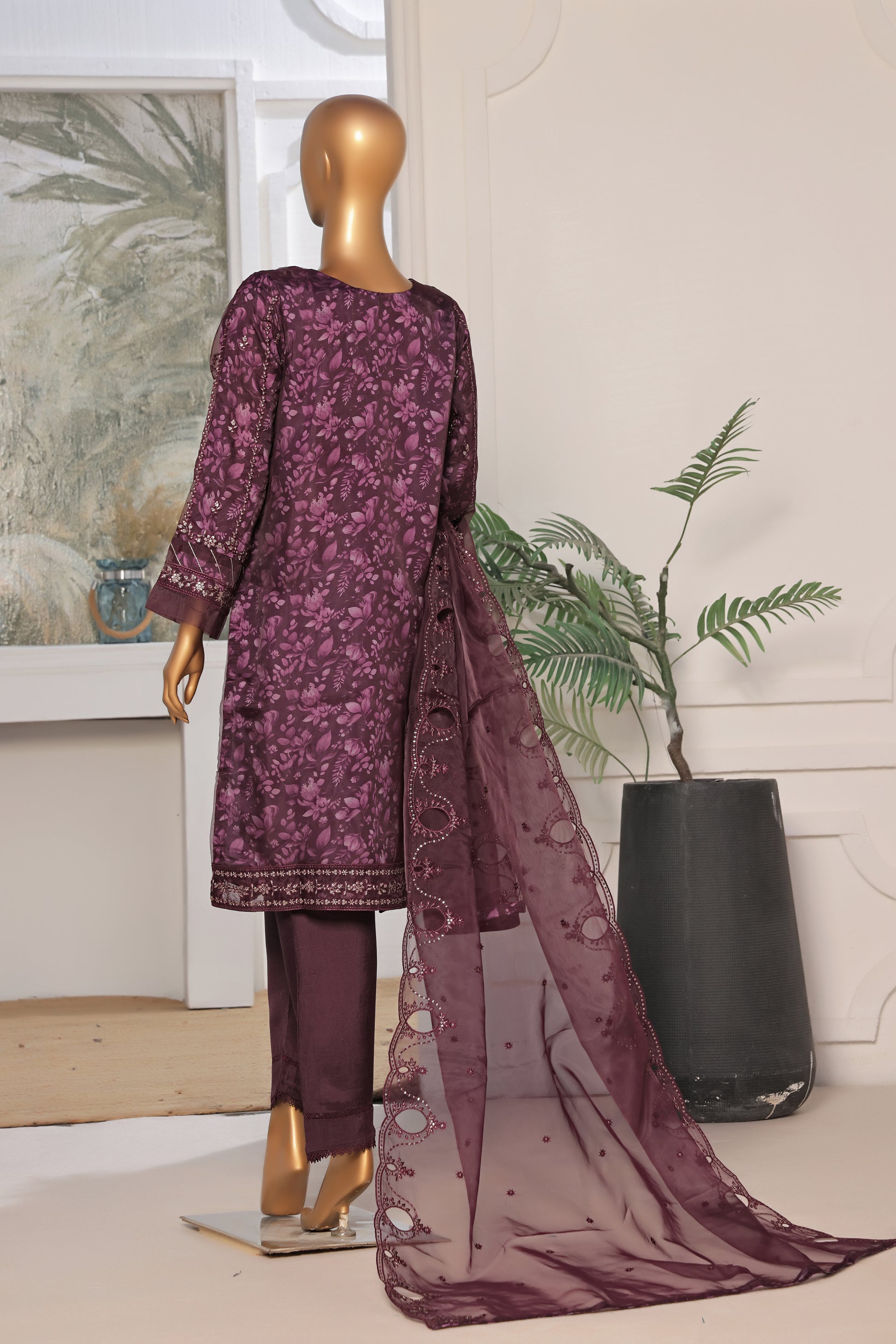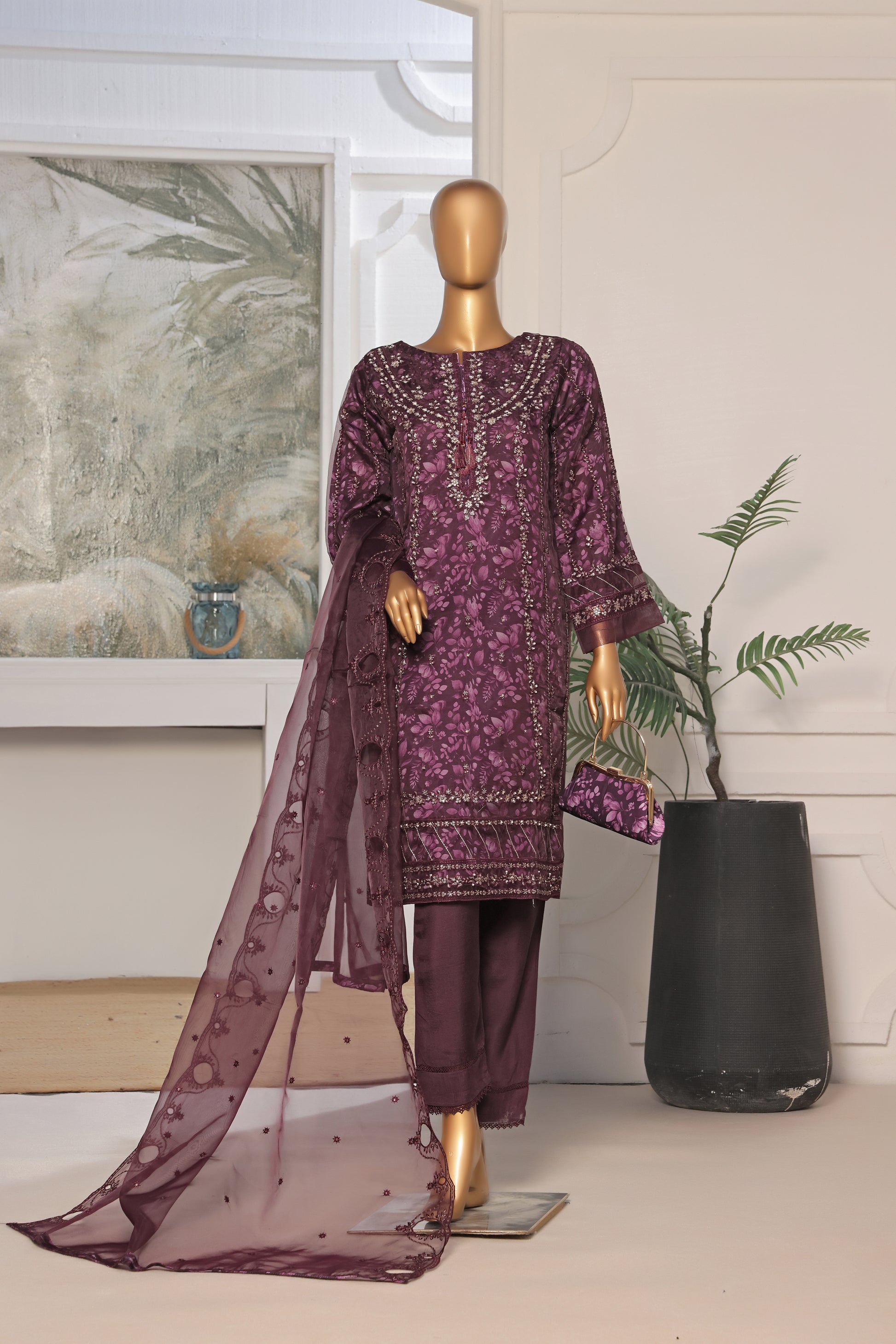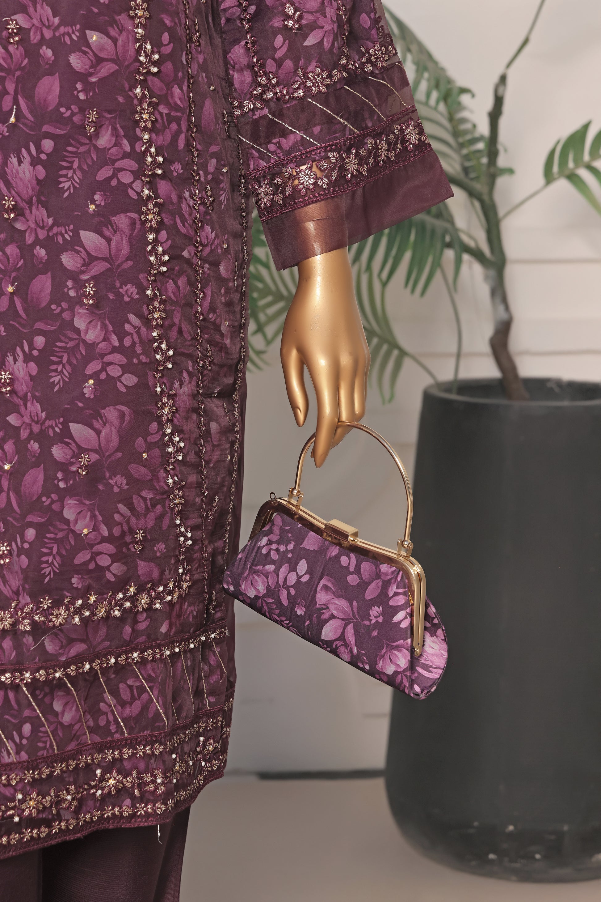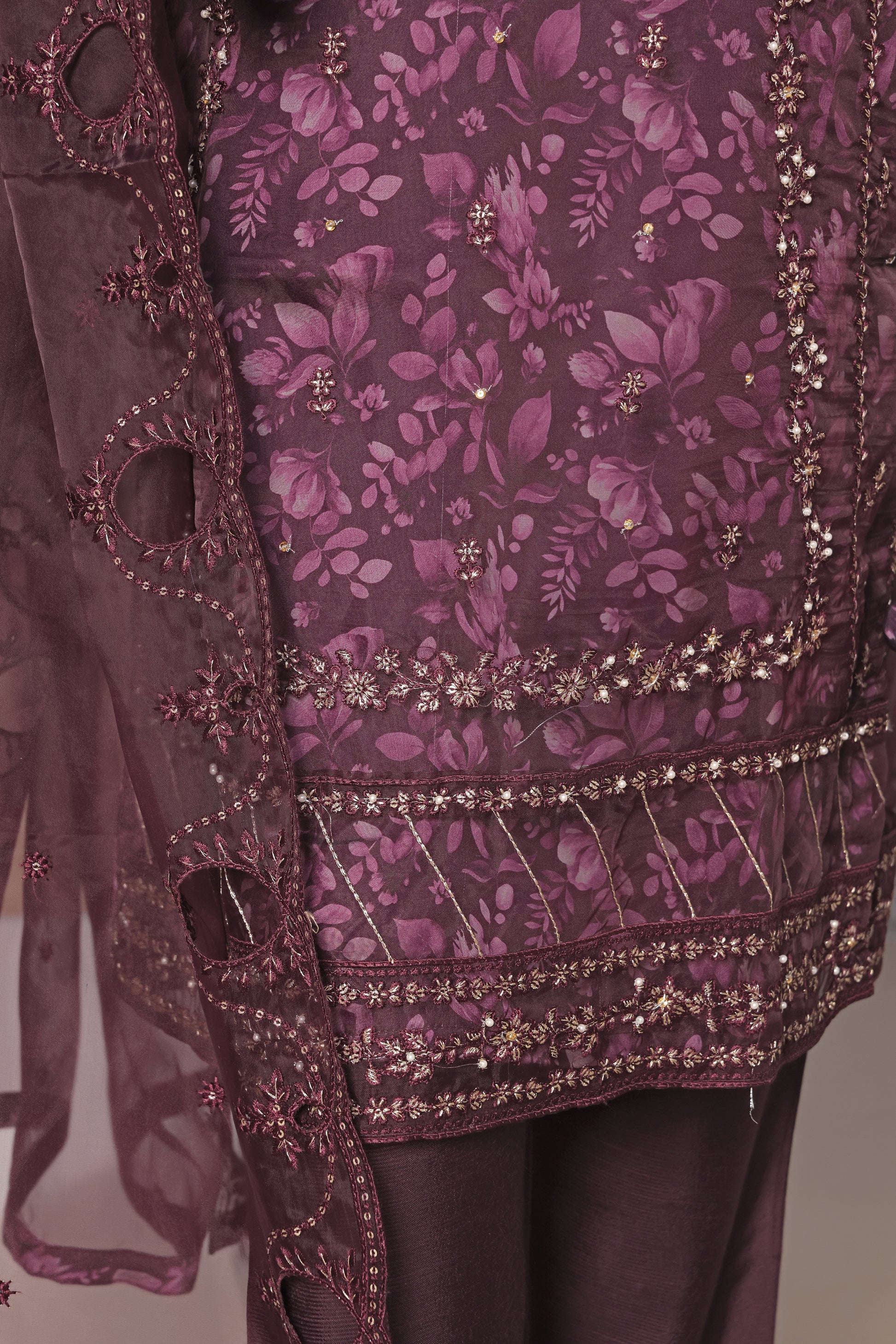Shirt: Semi-Stitched Embroidered Organza Shirt adored with embellishments and paired with a digital Printed Silk Inner