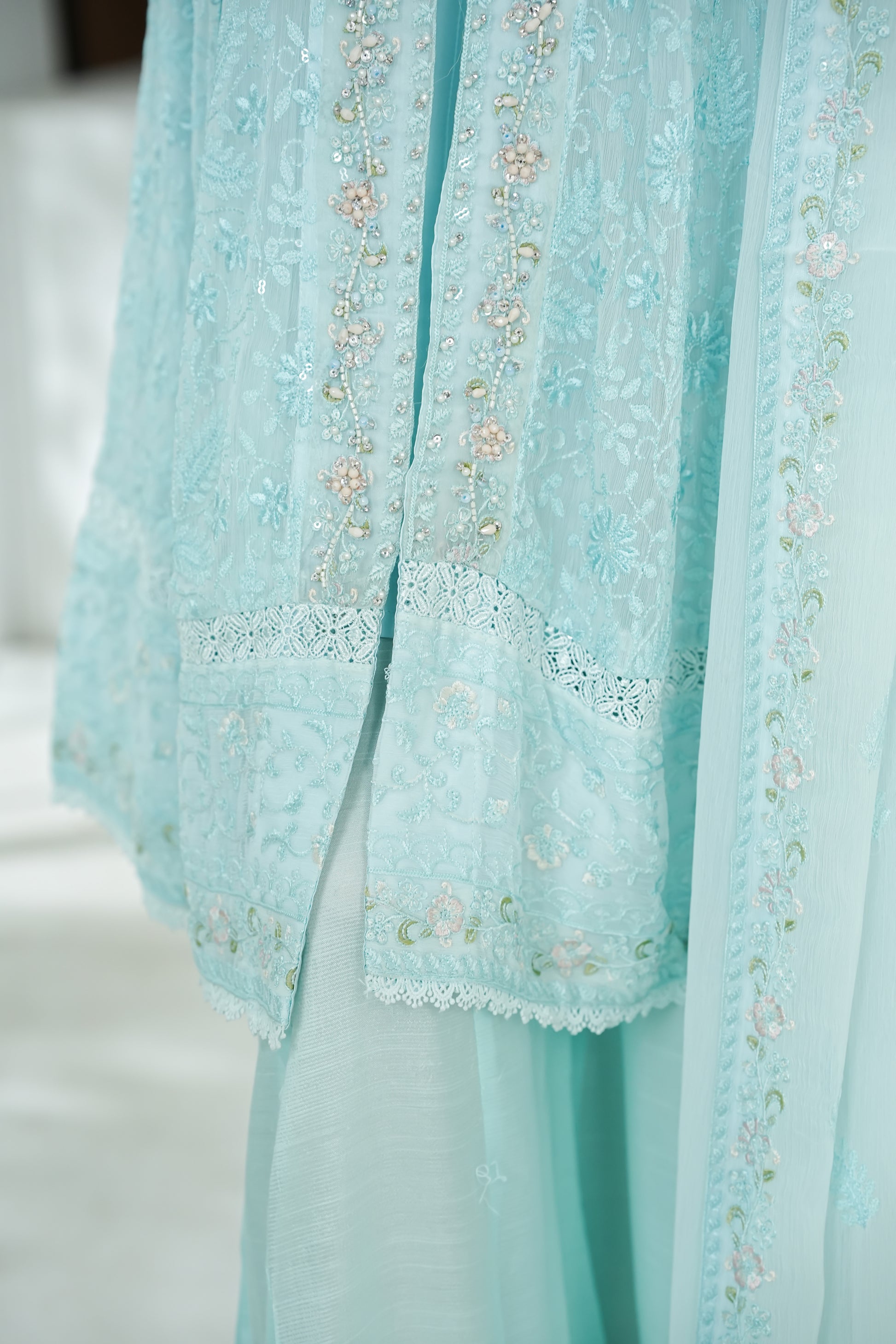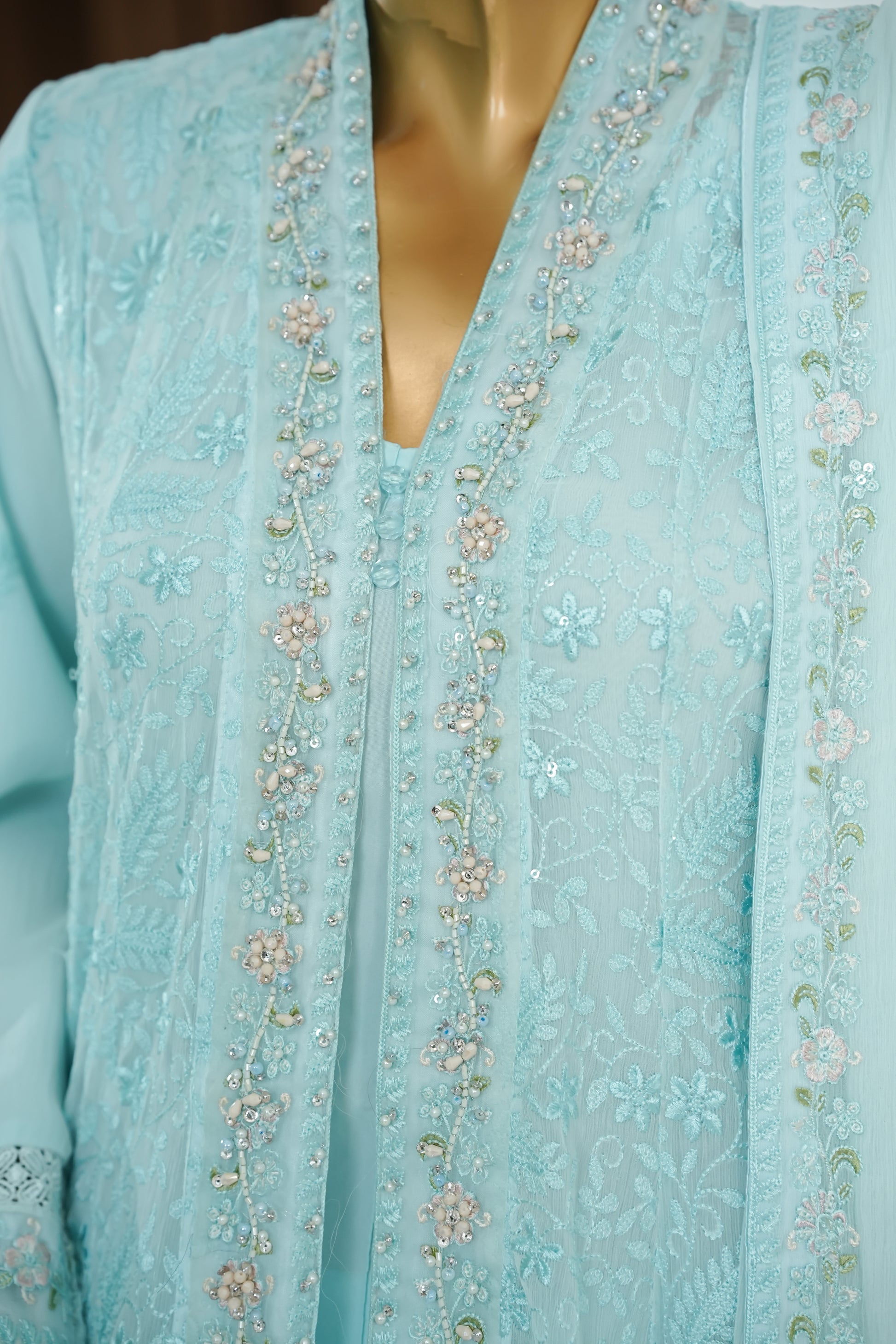 Shirt Chiffon Front Open Embroidered, handWork Patti , Lacework , Viscose inner .