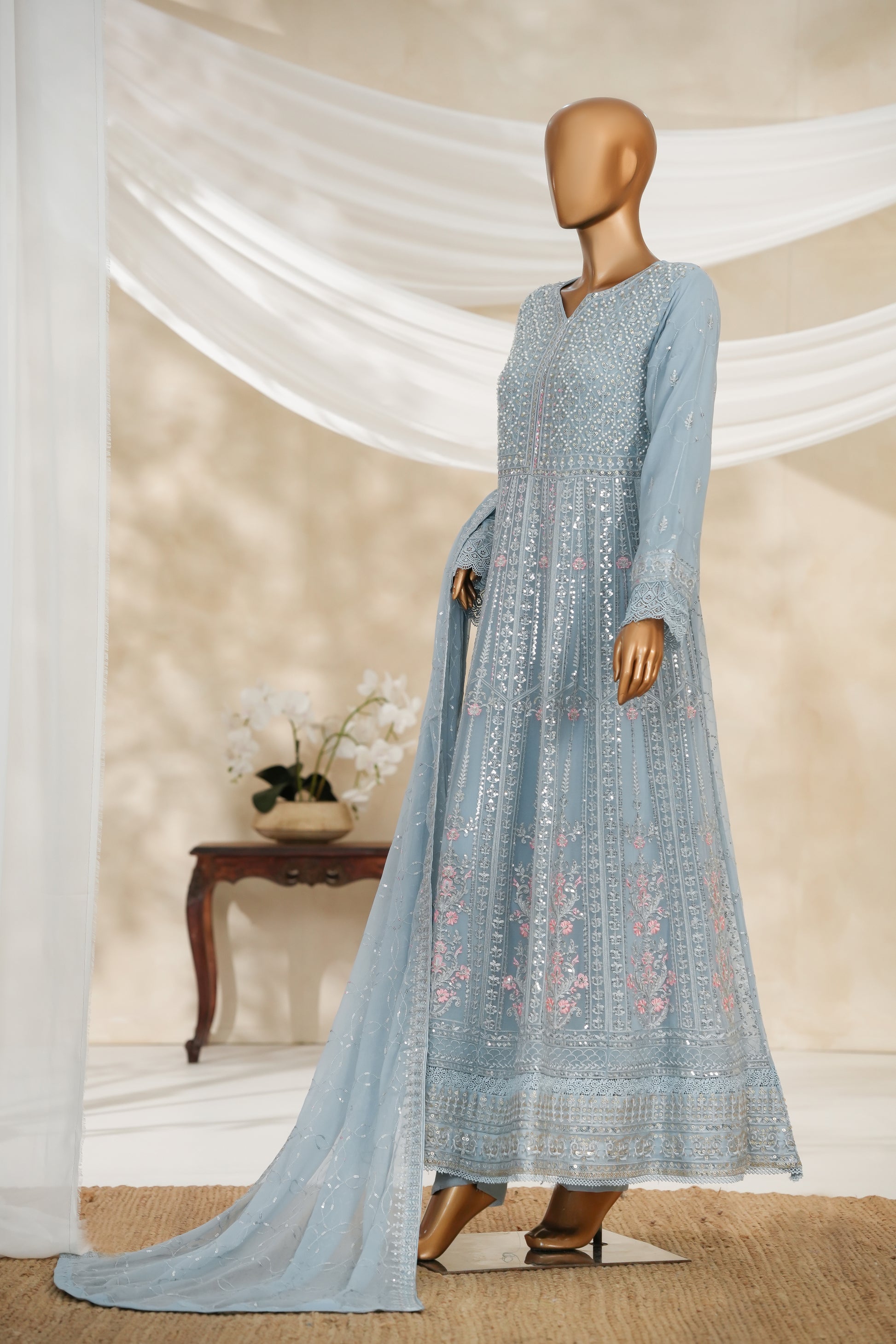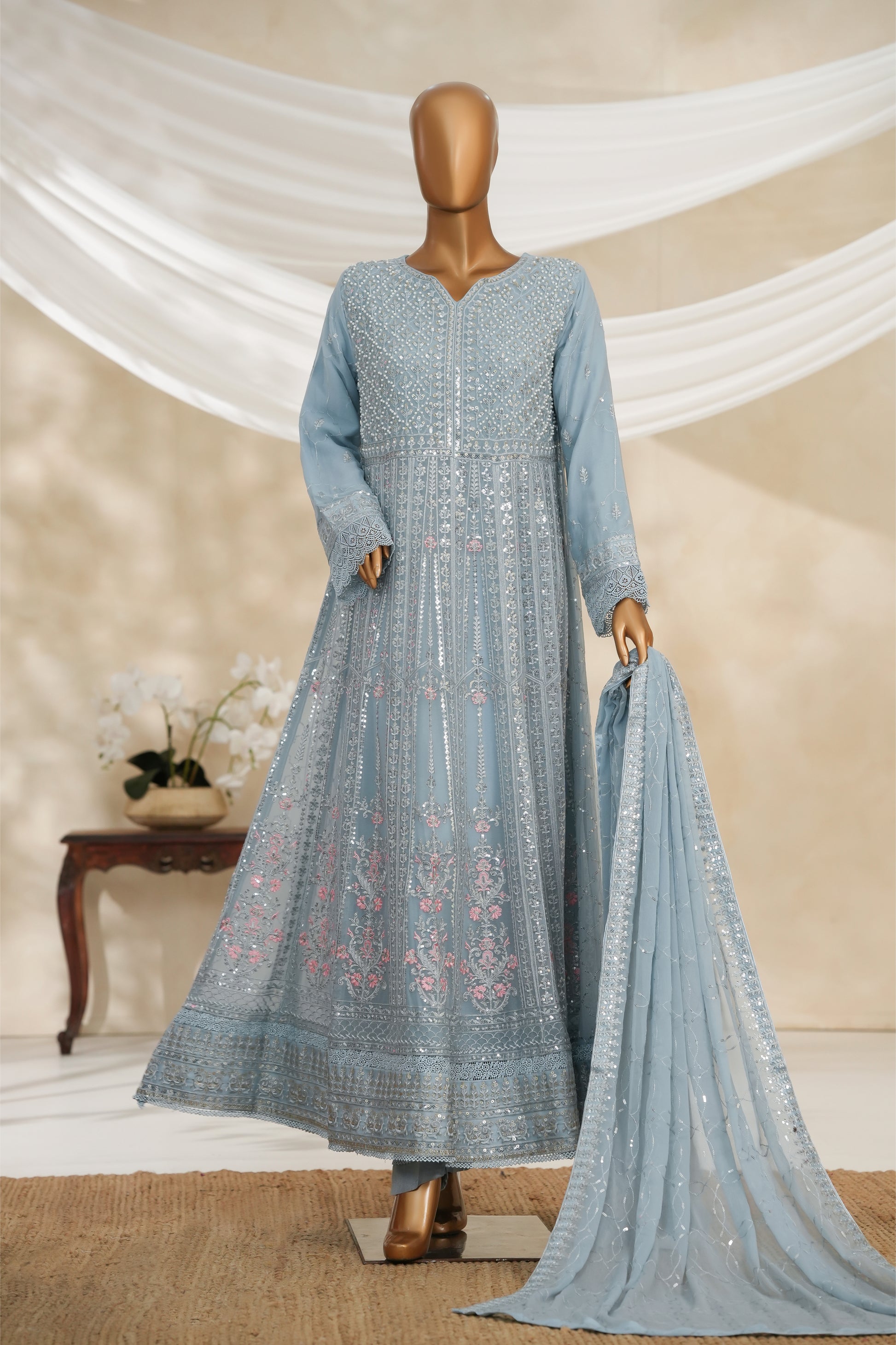 Maxi Chiffon, Embroidered, handWork , Malai inner.
