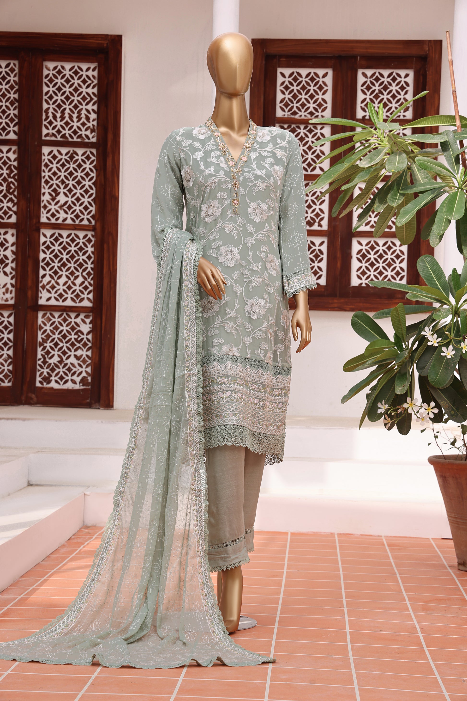 Olive - Zeenat - Chiffon Ensemble by Maria Fabrics