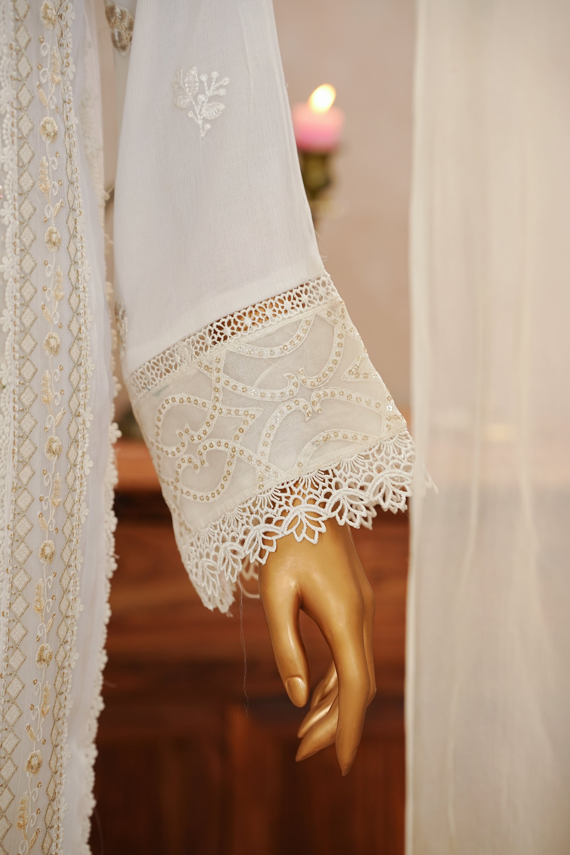 Shirt Chiffon Embroidered shirt with handWork , Lacework , Viscose inner