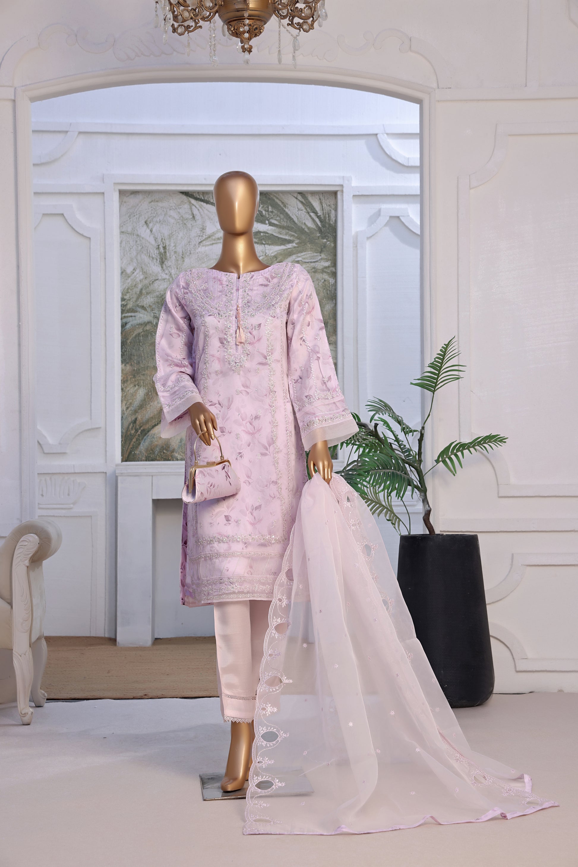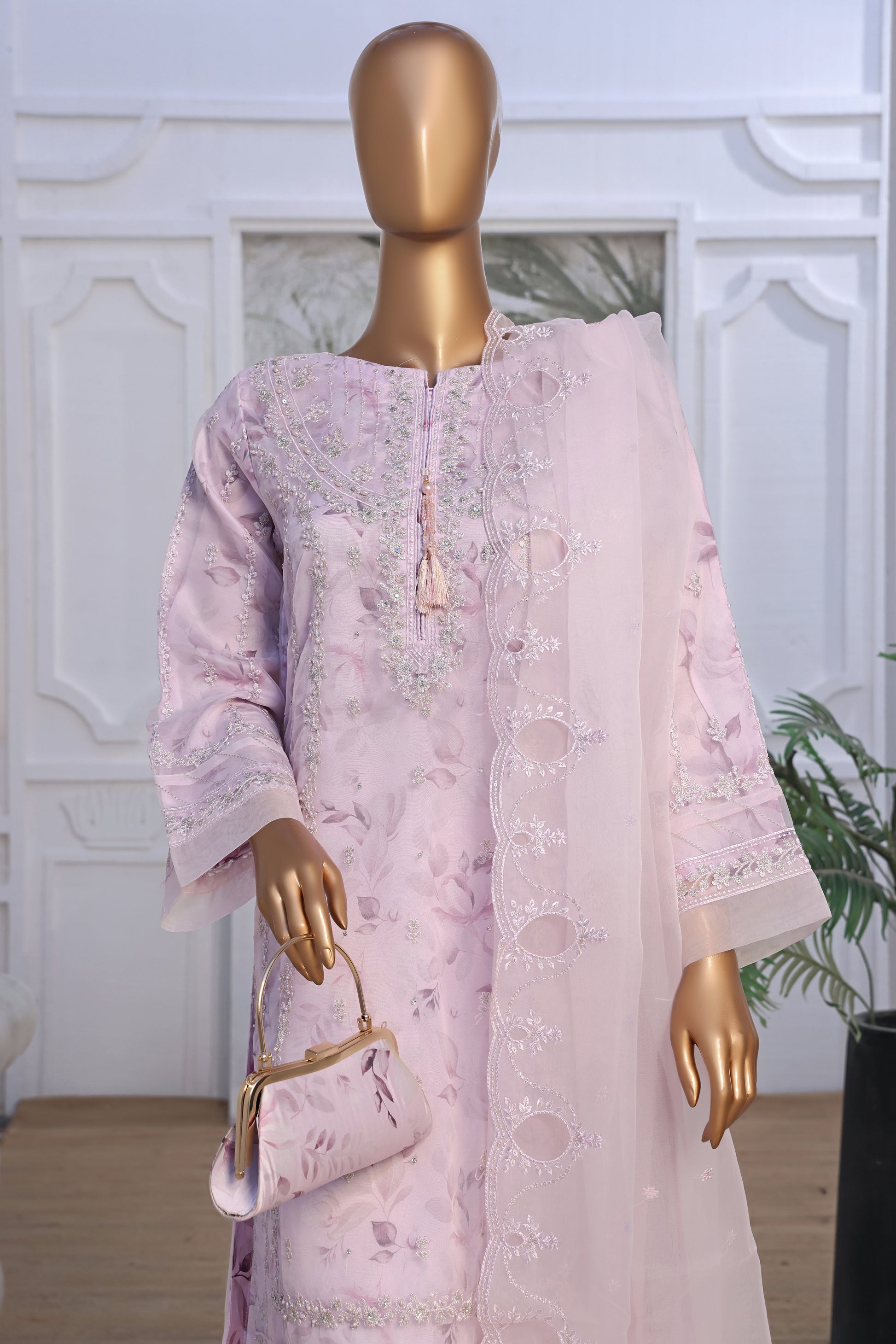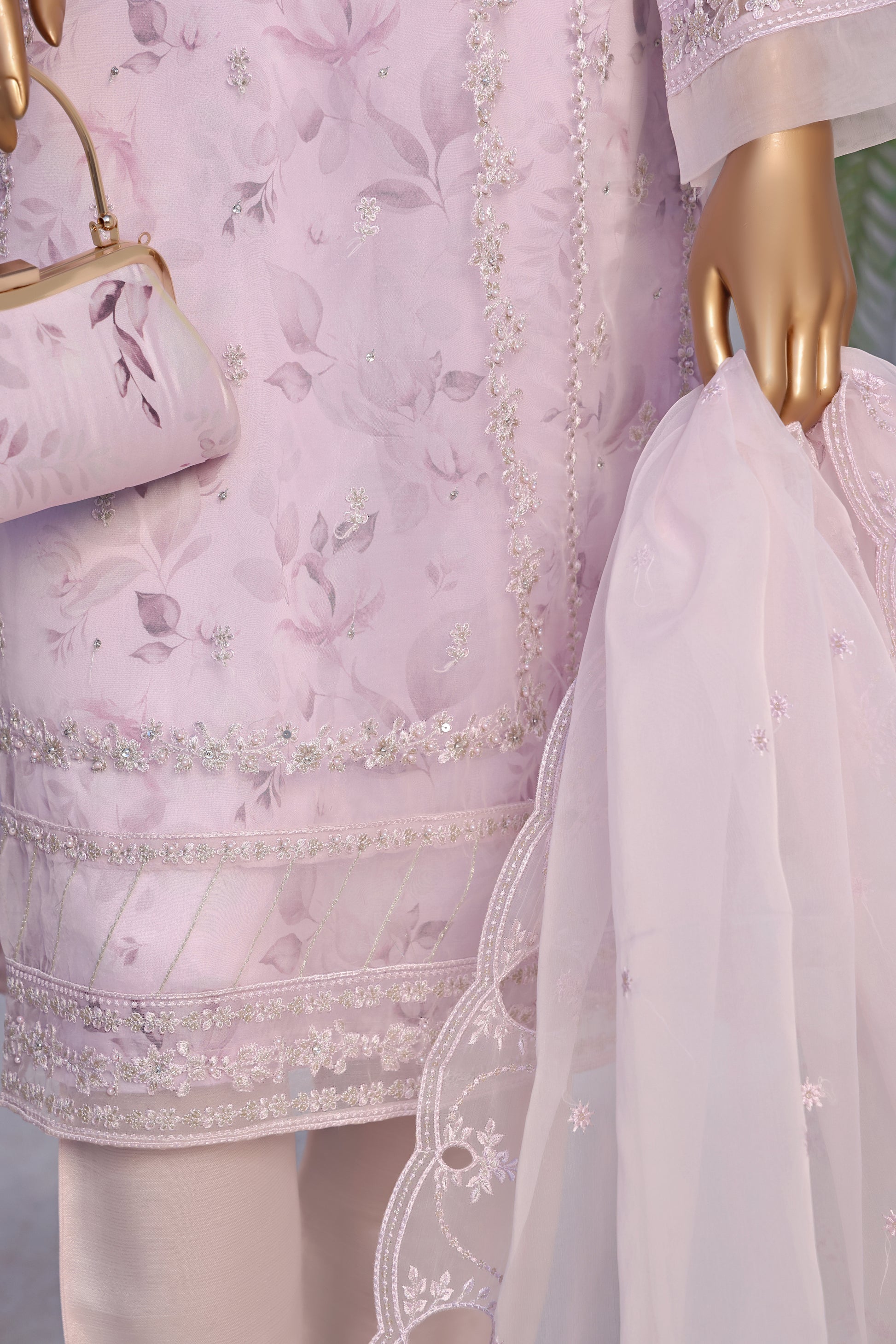 Shirt: Semi-Stitched Embroidered Organza Shirt adored with embellishments and paired with a digital Printed Silk Inner