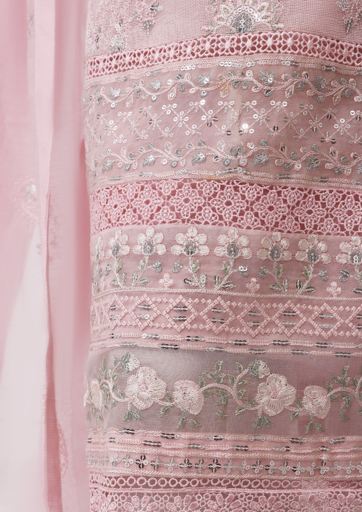 Dupatta Khaddi Net, Embroidered Pallu, 4 Side Silk Dori Piping.