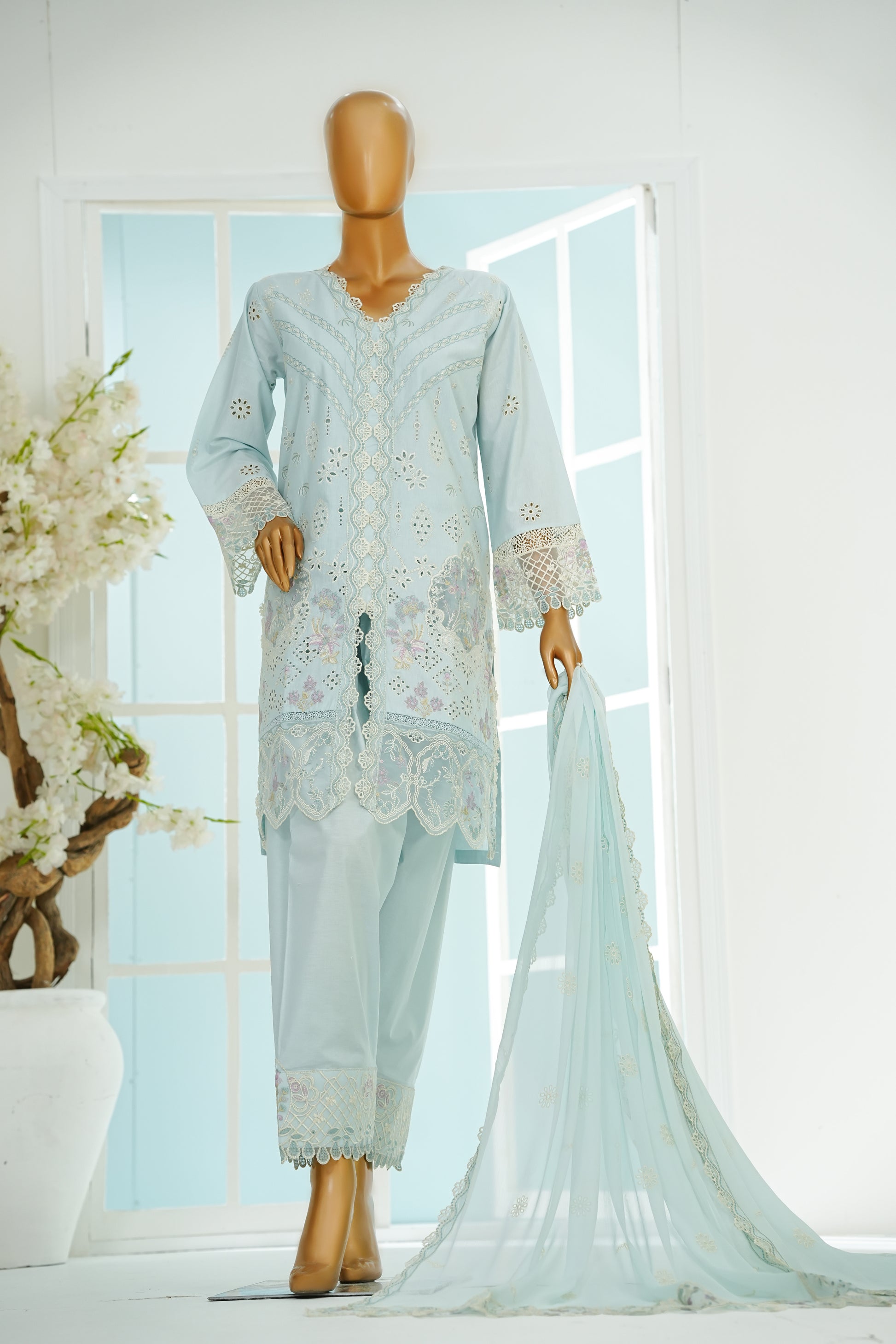Elegance personified, our Lawn ensemble features: