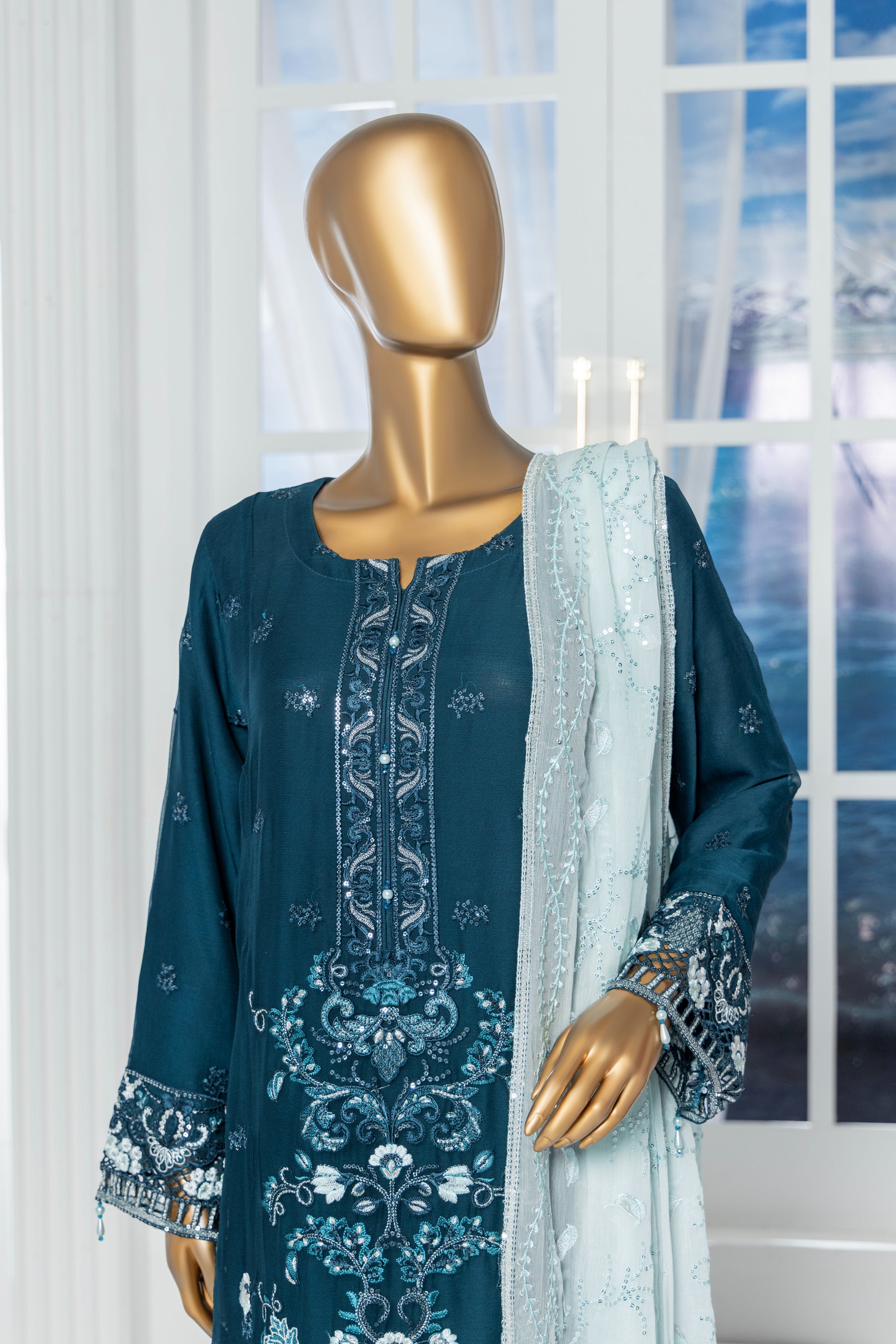 Sapphire - Husn - Chiffon Ensemble by Maria Fabrics