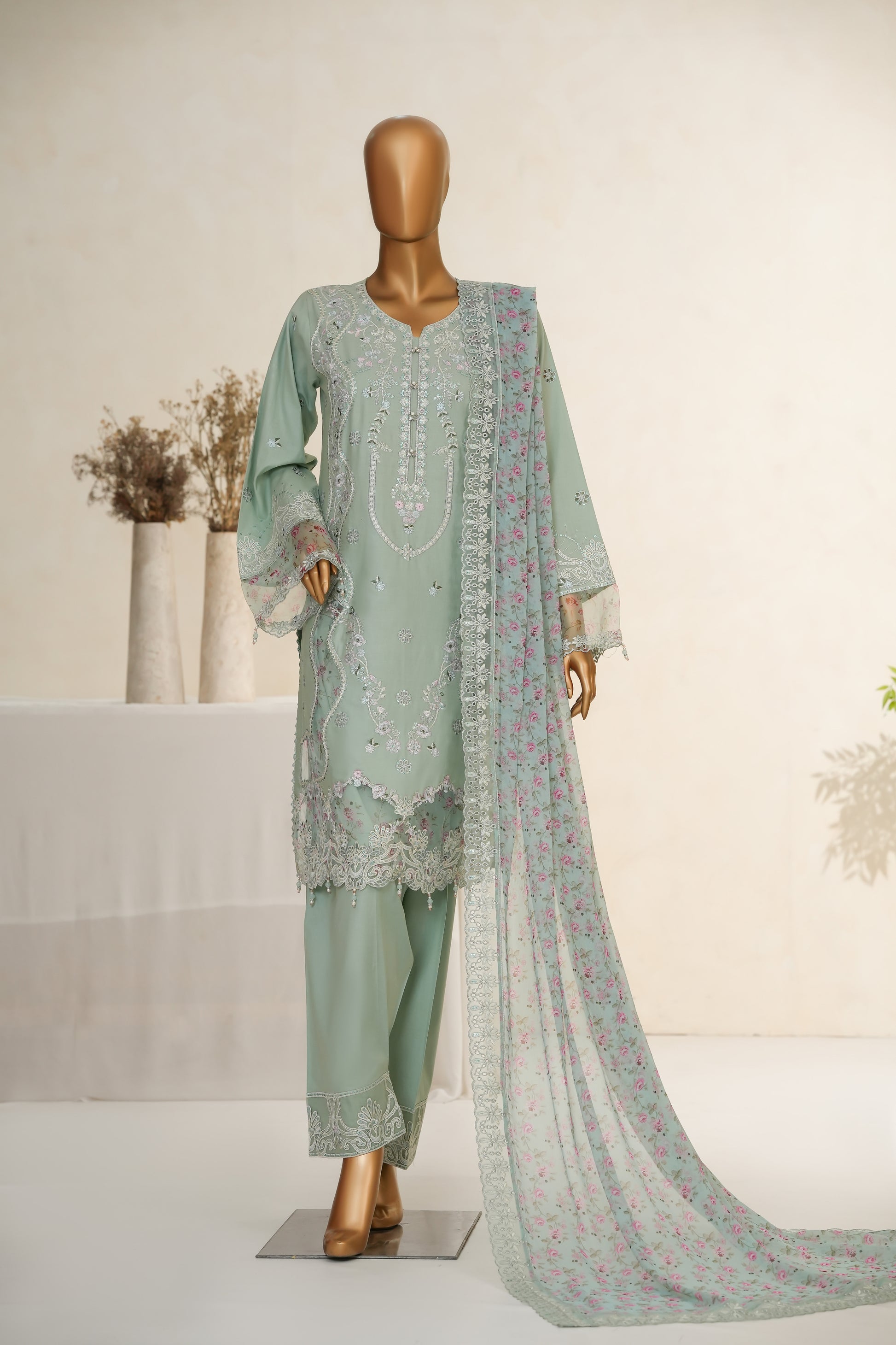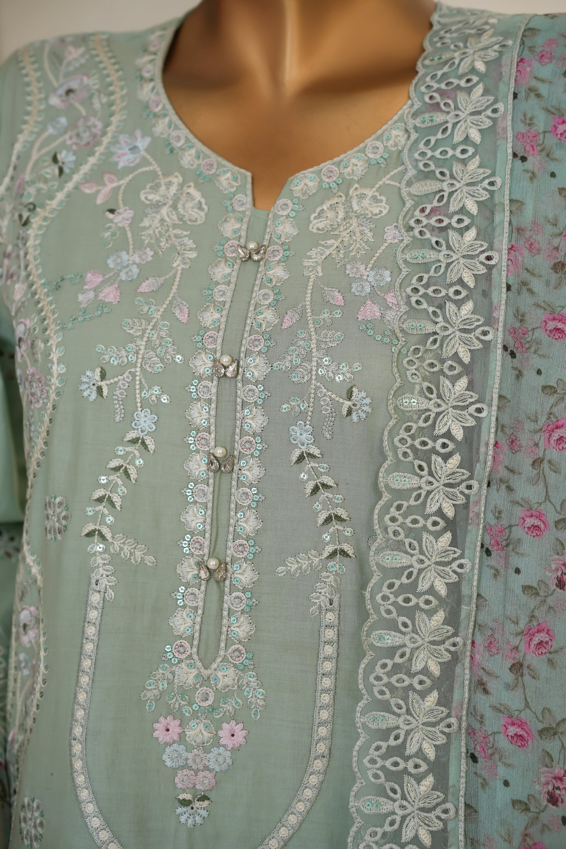 Elegance personified, our Lawn ensemble features: