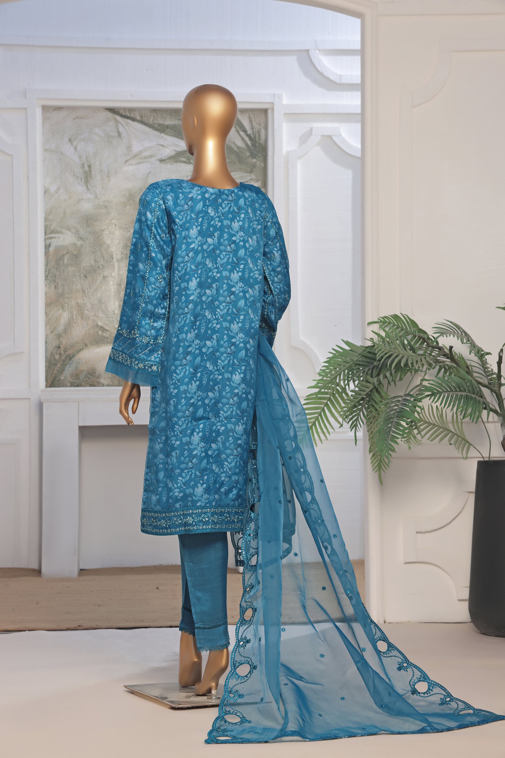 Shirt: Semi-Stitched Embroidered Organza Shirt adored with embellishments and paired with a digital Printed Silk Inner