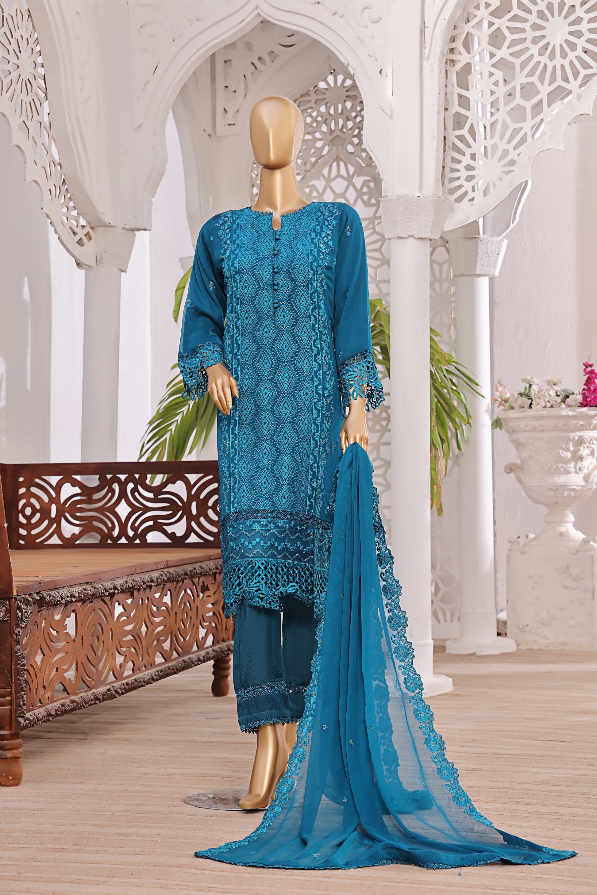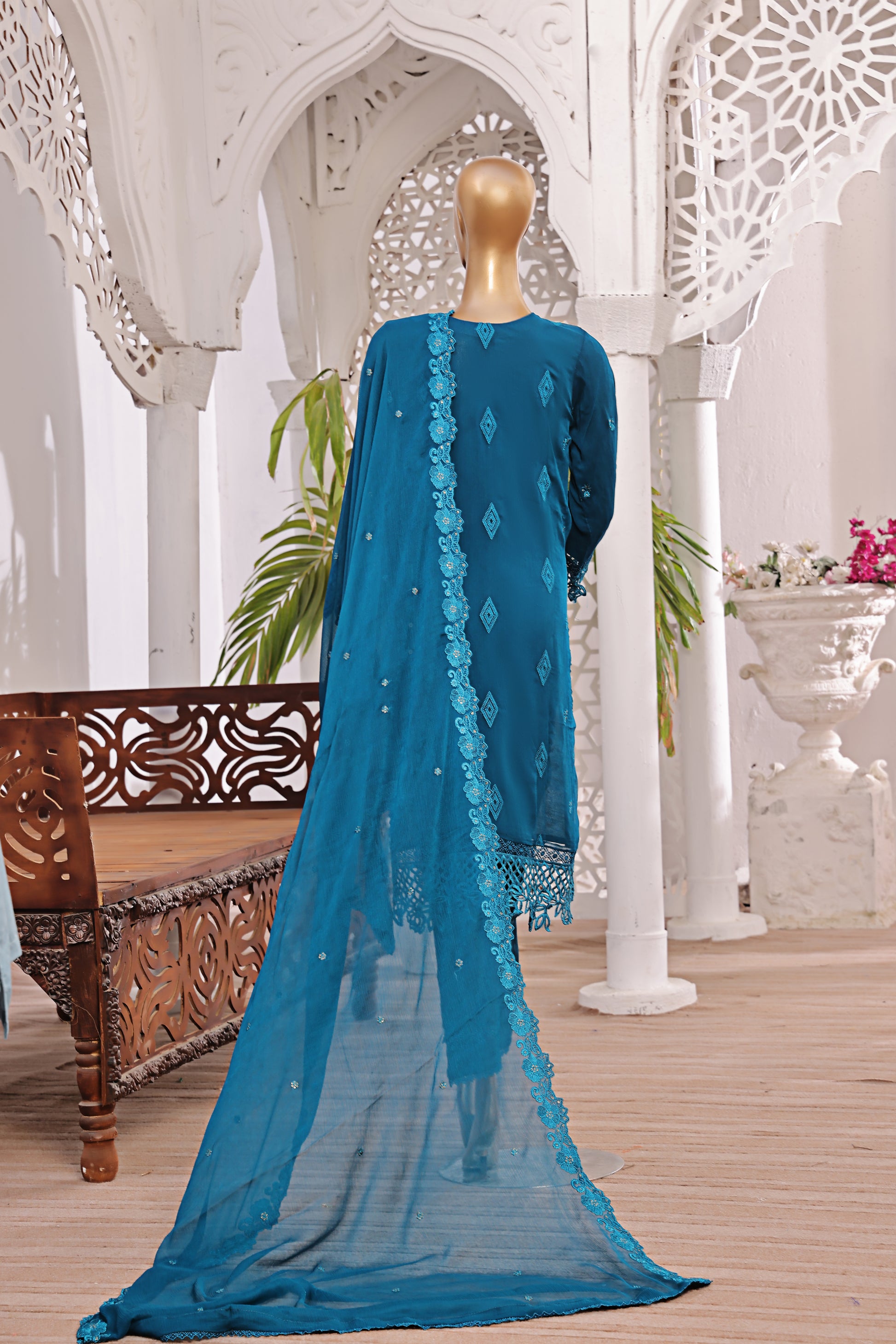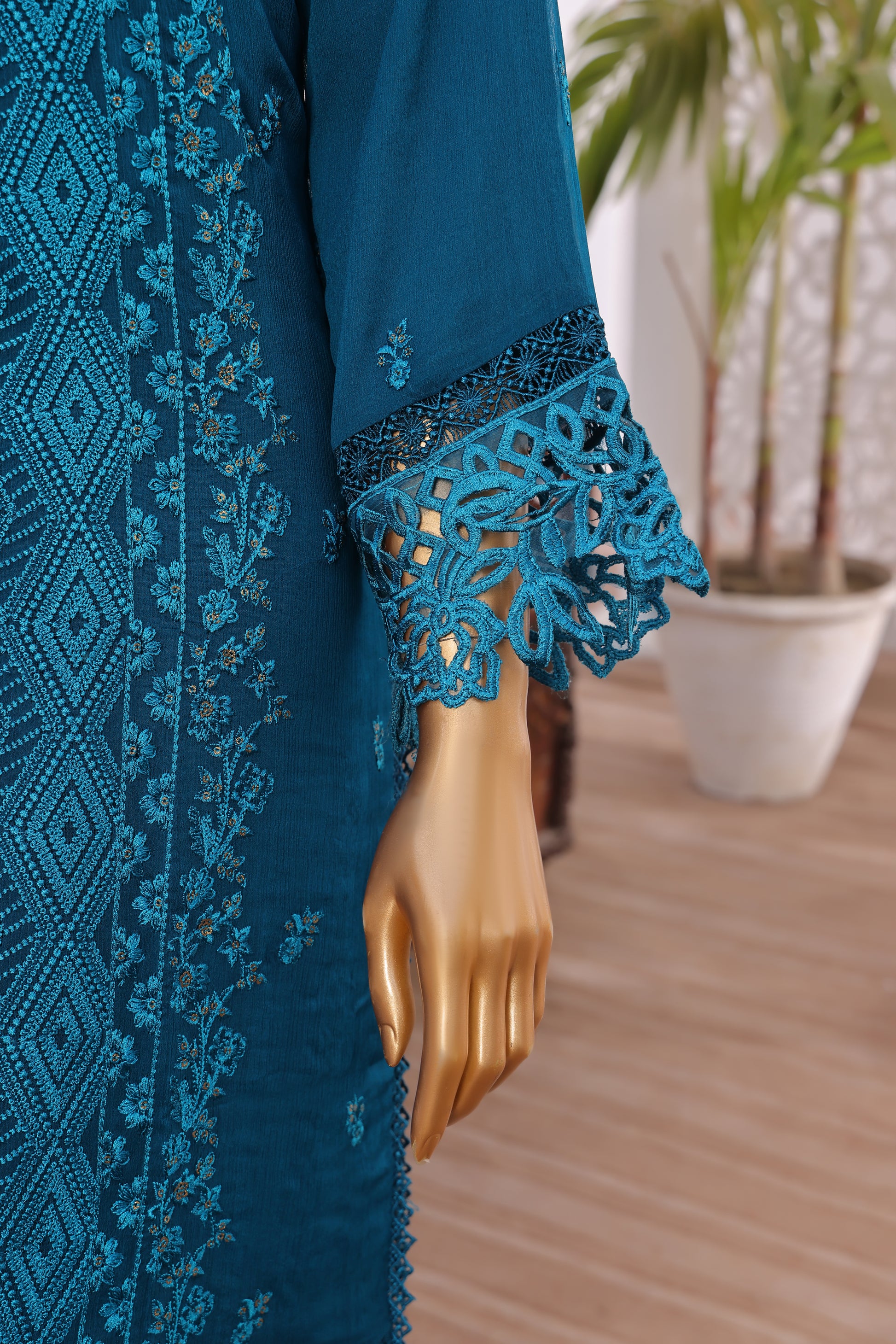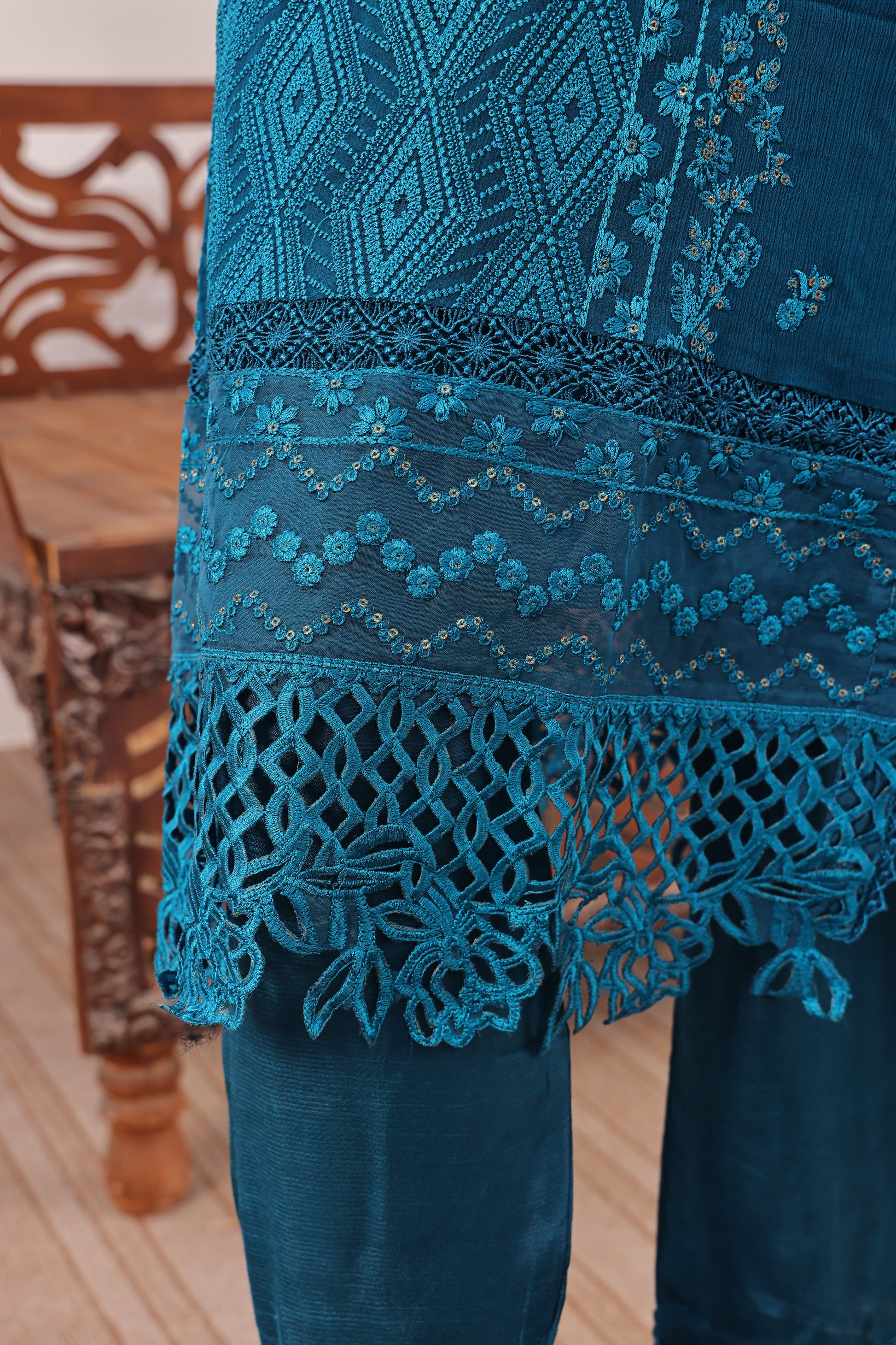Dupatta: Embroidered Chiffon with 4-side Silk Dori Piping.