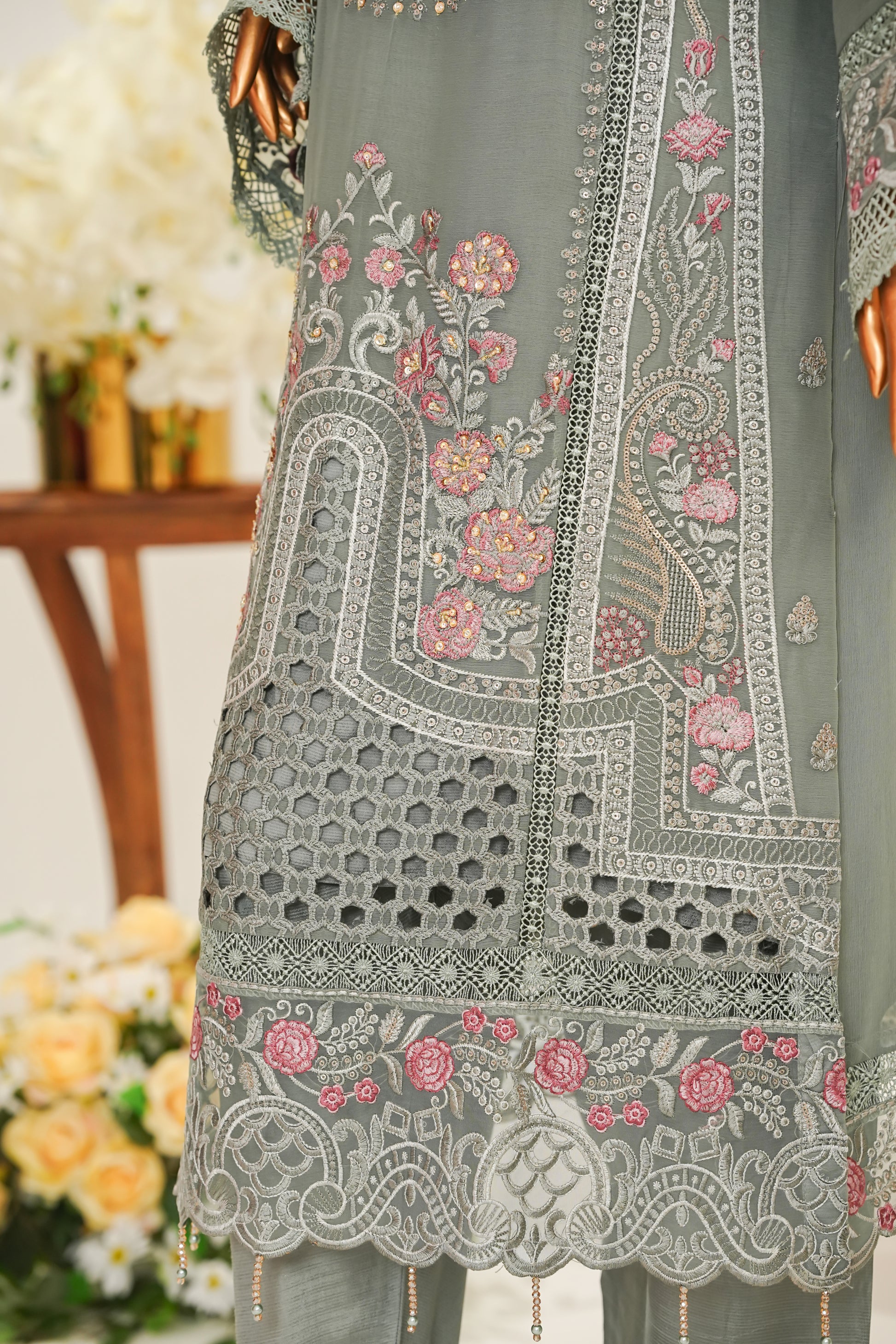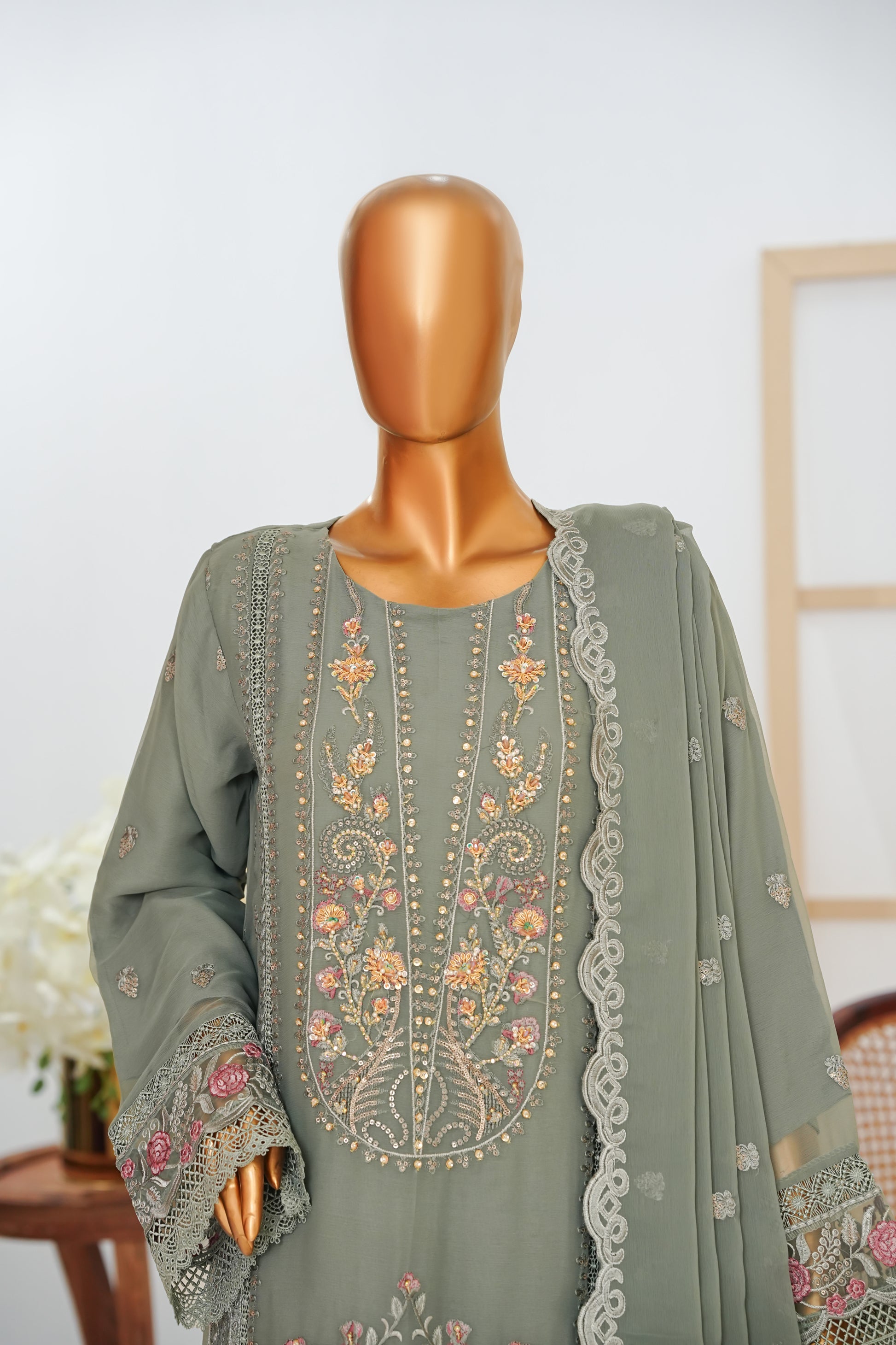 Elegance personified, our Chiffon ensemble features:
